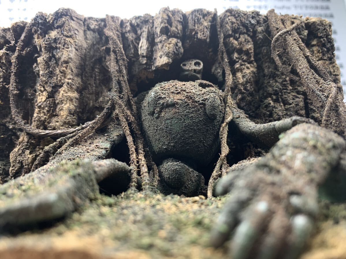 ★送料無料★ジオラマ天空の城ラピュタ「兵士の休息」★模型作りが高じて、クムクムパズル天空の城ラピュタの園丁ロボットを改造し、大樹のもとで朽ち果て、長い休息についているロボット兵を表現しました。★ジオラマには、実際の樹皮やツタを使用しています。★ジオラマは、幅約23㎝、奥行約13.3㎝、高さ約13.4㎝のアーチ型コレクションボックスを使用し、重量約435gになります。★私の作風をインスタグラム