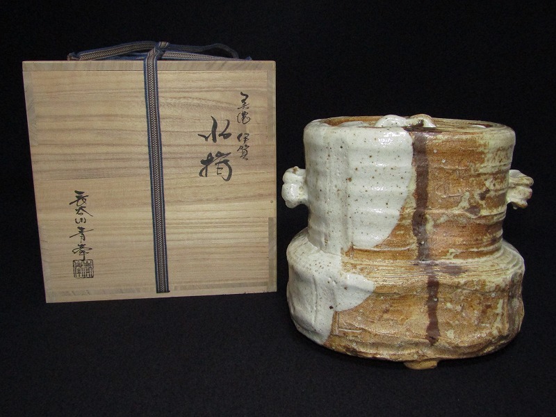 Product name: 長谷川青峯 美濃伊賀 耳付 水指 共箱 茶道具 替蓋付き fg28-8271[GGG]