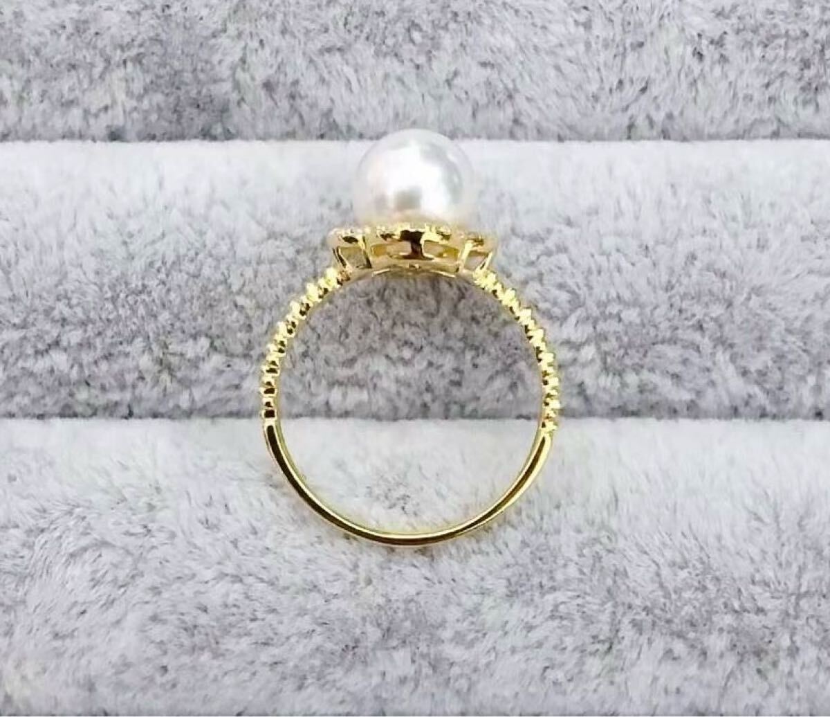 18金を使用した天然akoyaパール(照りがいい、無傷、桜色花珠)リングになります。