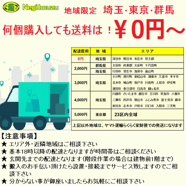 ● 自社便での配送の場合は搬入機材等はございませんので、手運びで搬入可能な場所までとなります