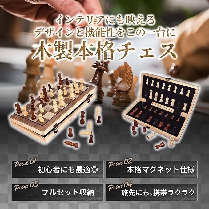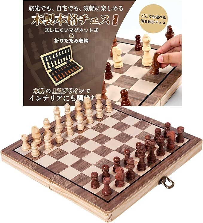 Product name: HT Sports チェス 【インテリアにも映える】 ボード 盤 駒 セット 木製 折りたたみ式 国際チェス 磁気 マグネット ポータブル Sサイズ