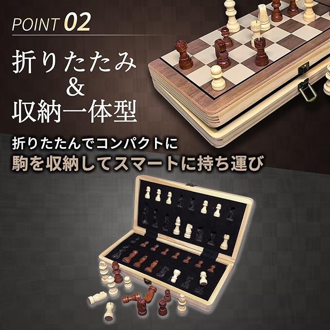 【どこでも楽しめるチェスセット】 自宅・旅先・カフェなど、場所を選ばず気軽にチェスを楽しめます。 折りたたみ式でコンパクト、収納と携帯性にも優れています。