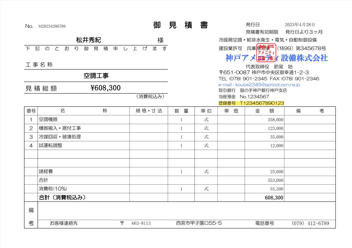 各種伝票(見積書、請求書、領収証 他)に適格請求書発行事業者登録番号を登録・表示が可能となっています。