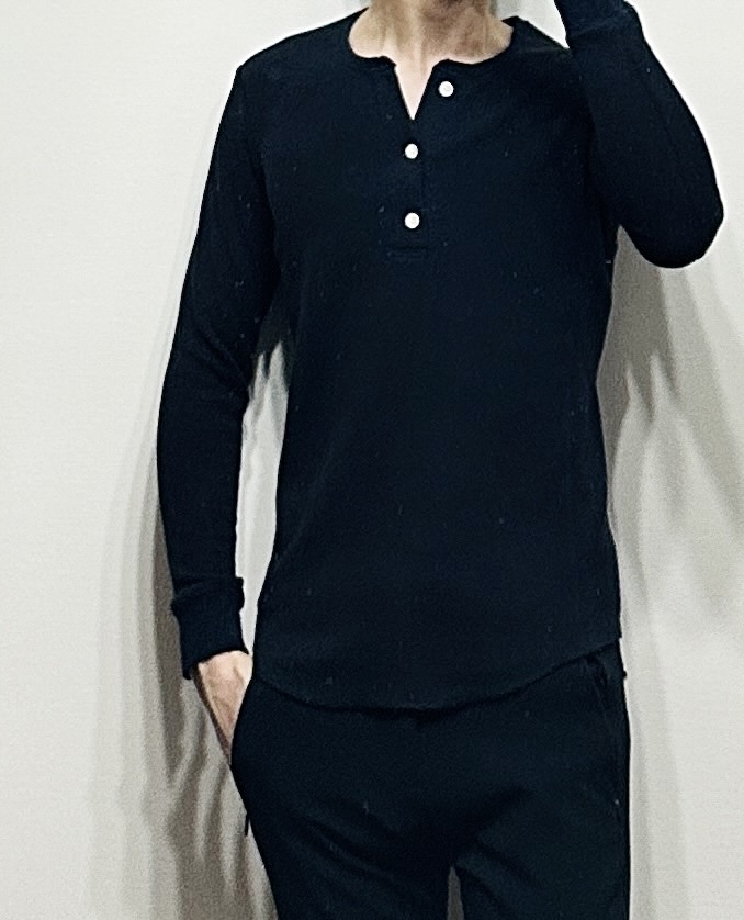 デザインはシンプルなロングスリーブのヘンリーネック。