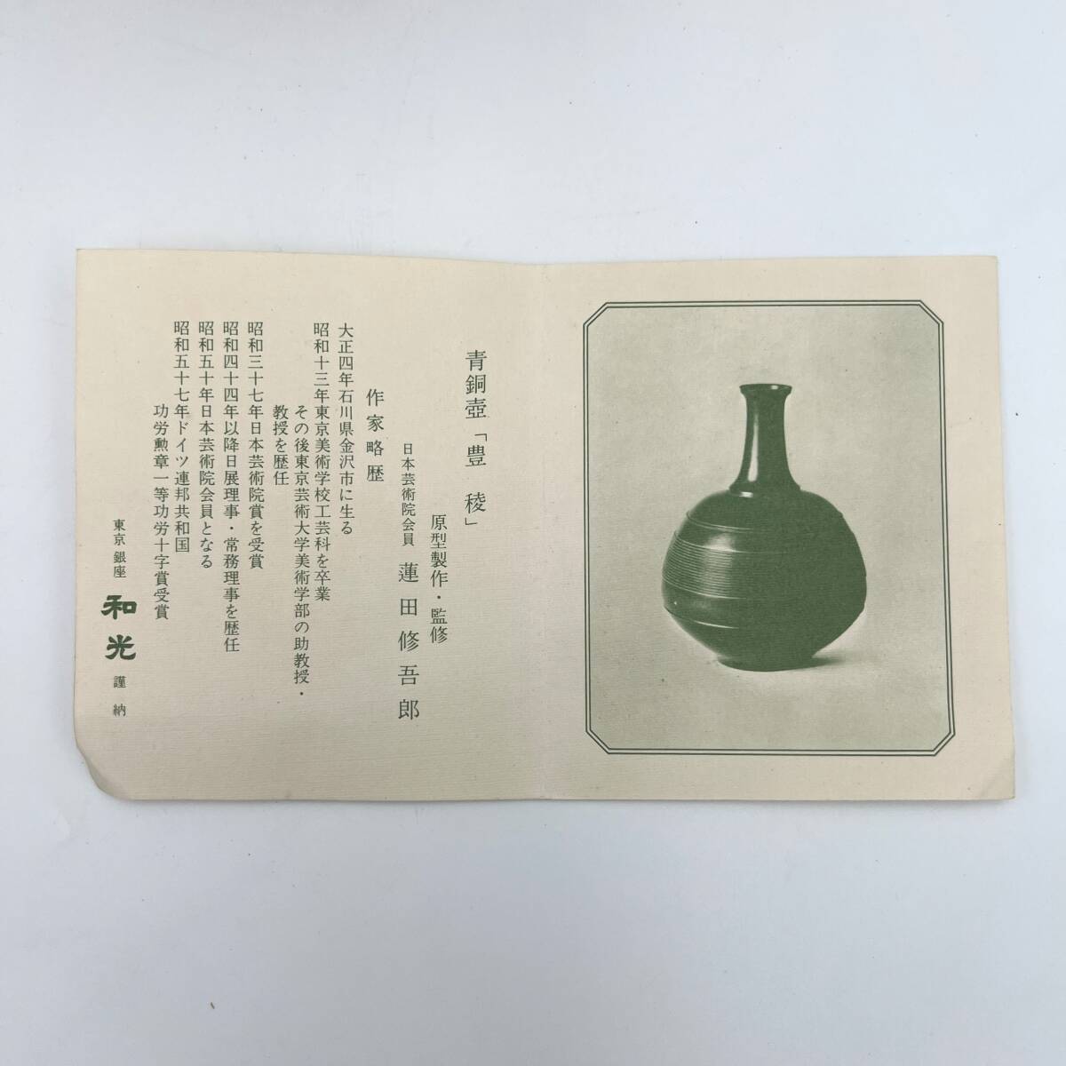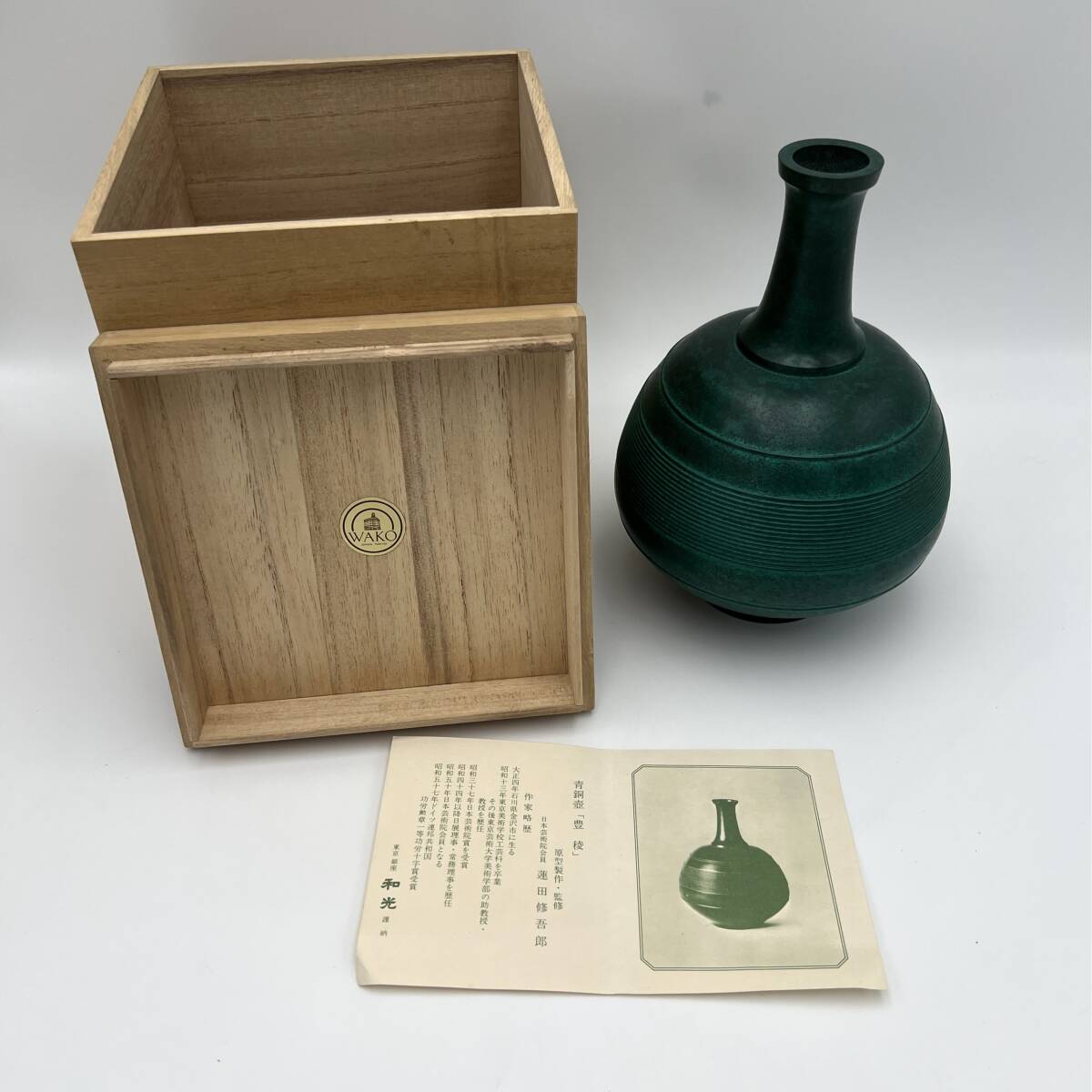 和光 WAKO 青銅壺 豊稜 蓮田修吾郎 監修 木箱 栞 花瓶 花器 一輪挿し 置物 東京銀座 高さ約20.5cm