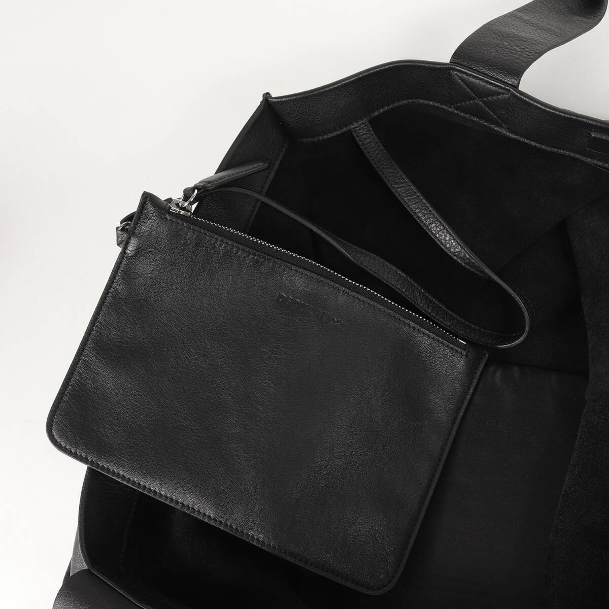 柔らかくしなやかで上質なレザー素材を使用し、ブランドロゴプリント、バッグインバッグポーチが配されたショルダートートバッグです。
