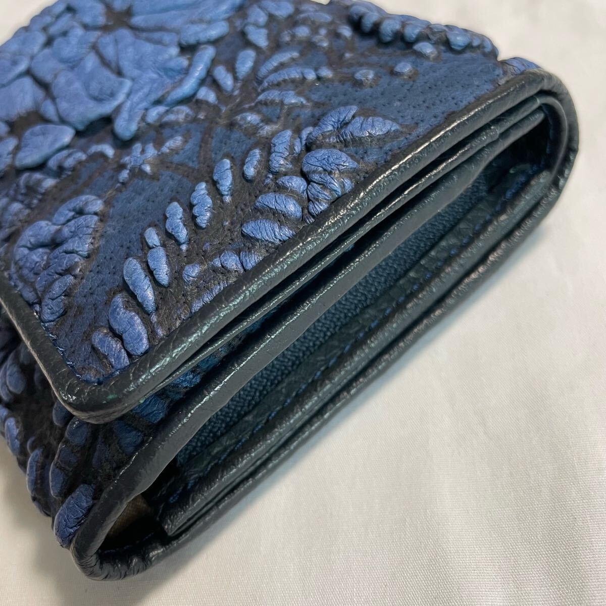 decobranche デコブランシェ 二つ折り財布 ブルー系 フラワー 花柄 ネイビー系 レディース ウォレット レザー