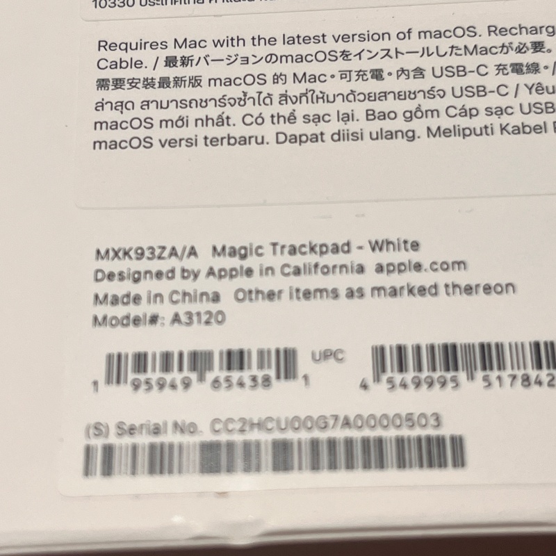 Product name: 【新品・未使用】Apple Magic Magic Trackpad(USBC)- ホワイト MXK93ZA/A(ホワイト)