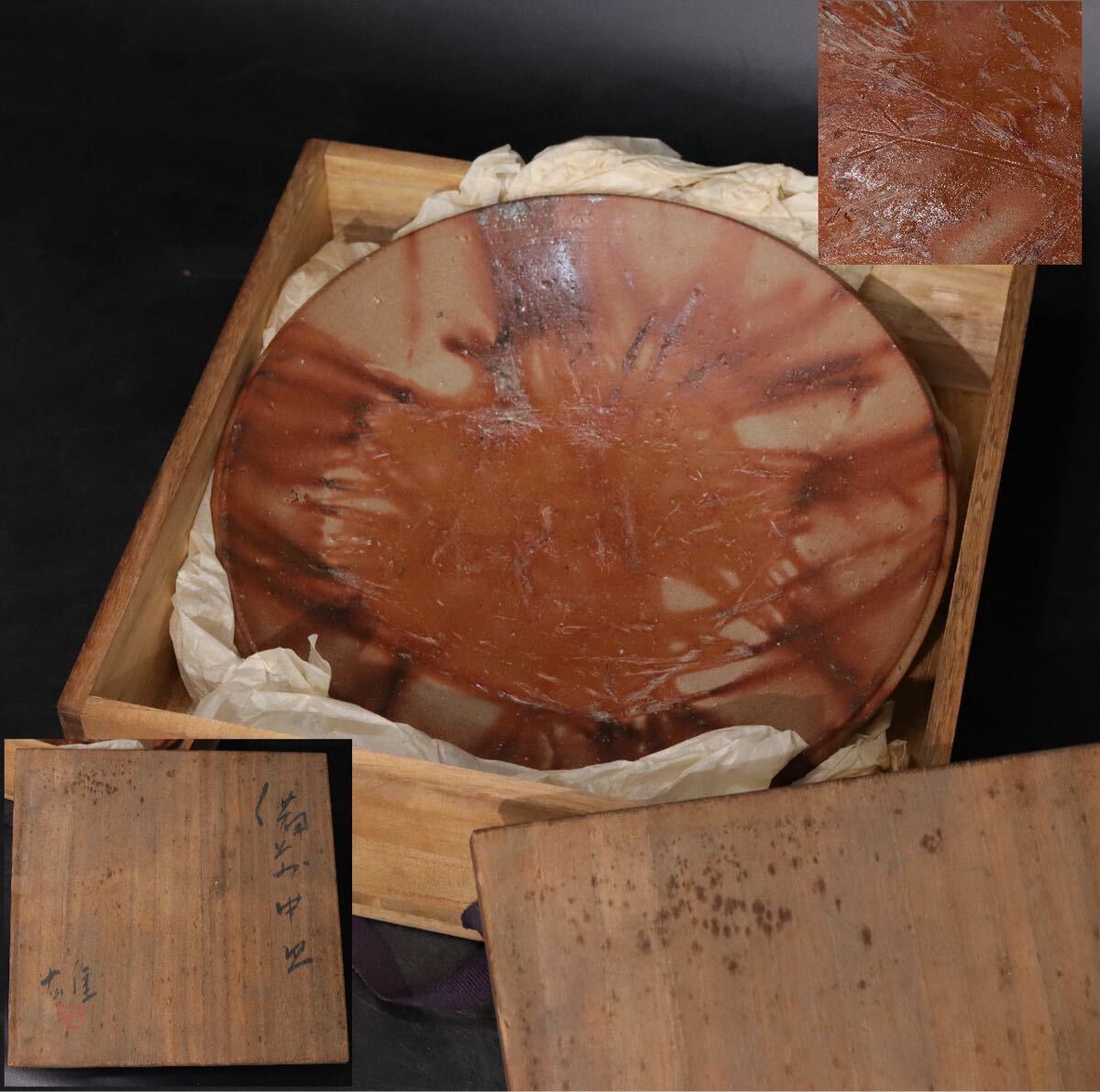 Product name: 藤原雄 「 備前 皿 」 火襷 共箱 ・ 栞 付 / 備前焼 人間国宝 煎茶道具 手造 手捻り .B706