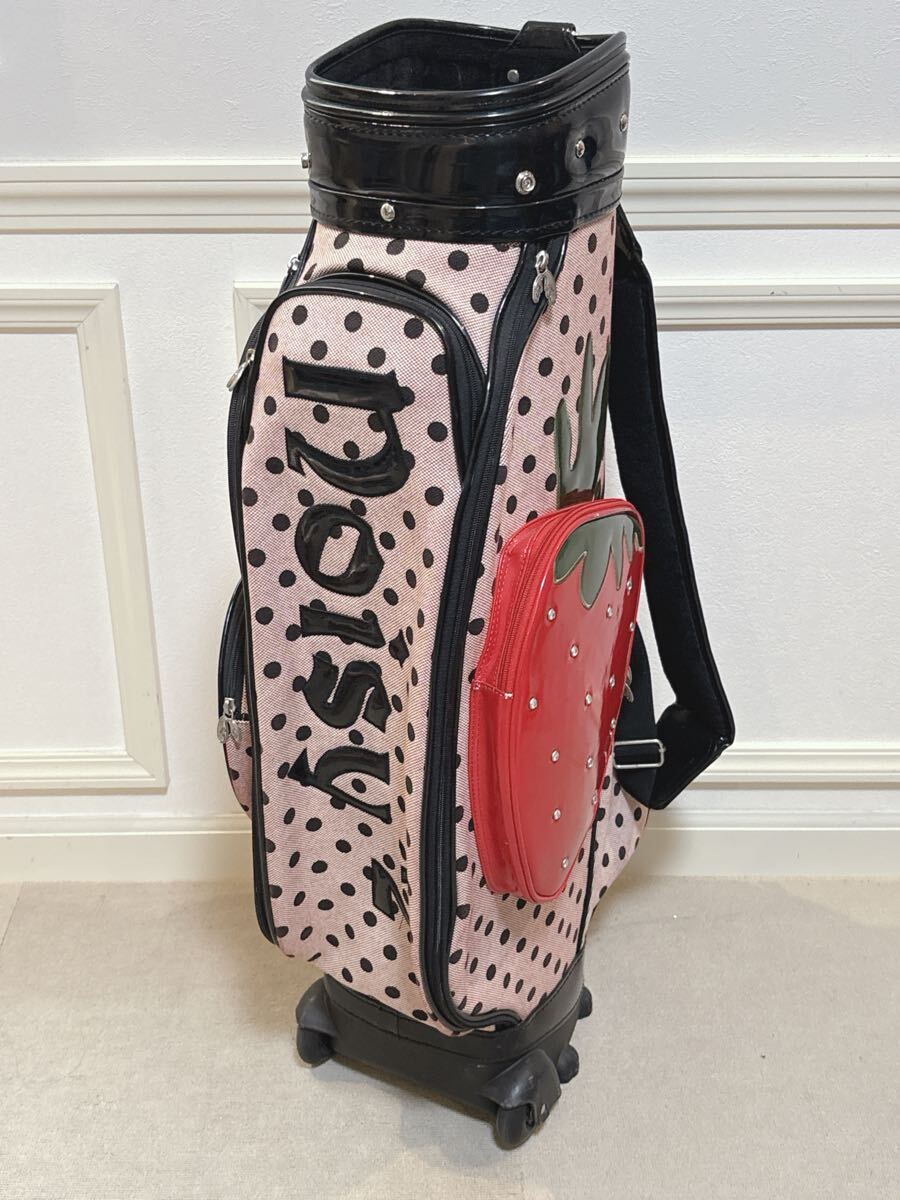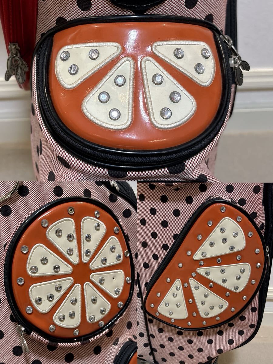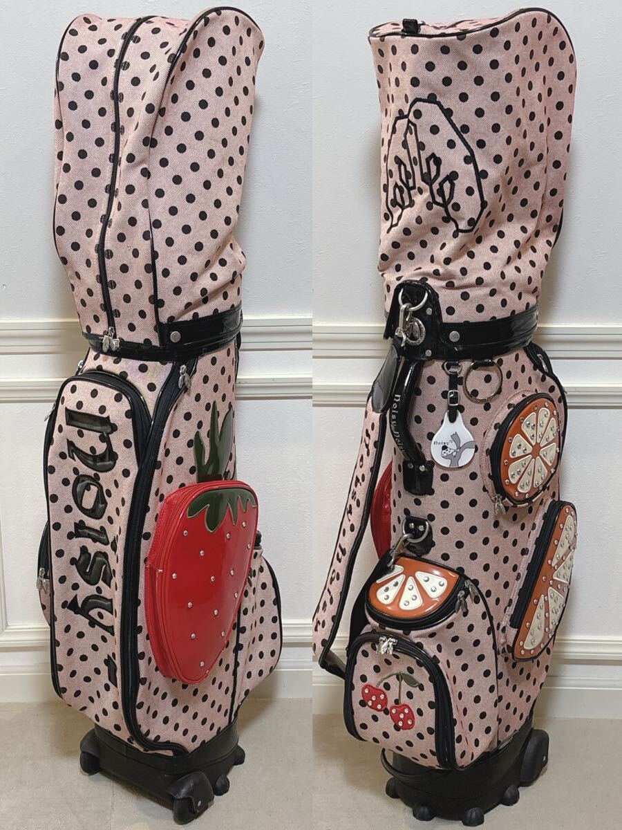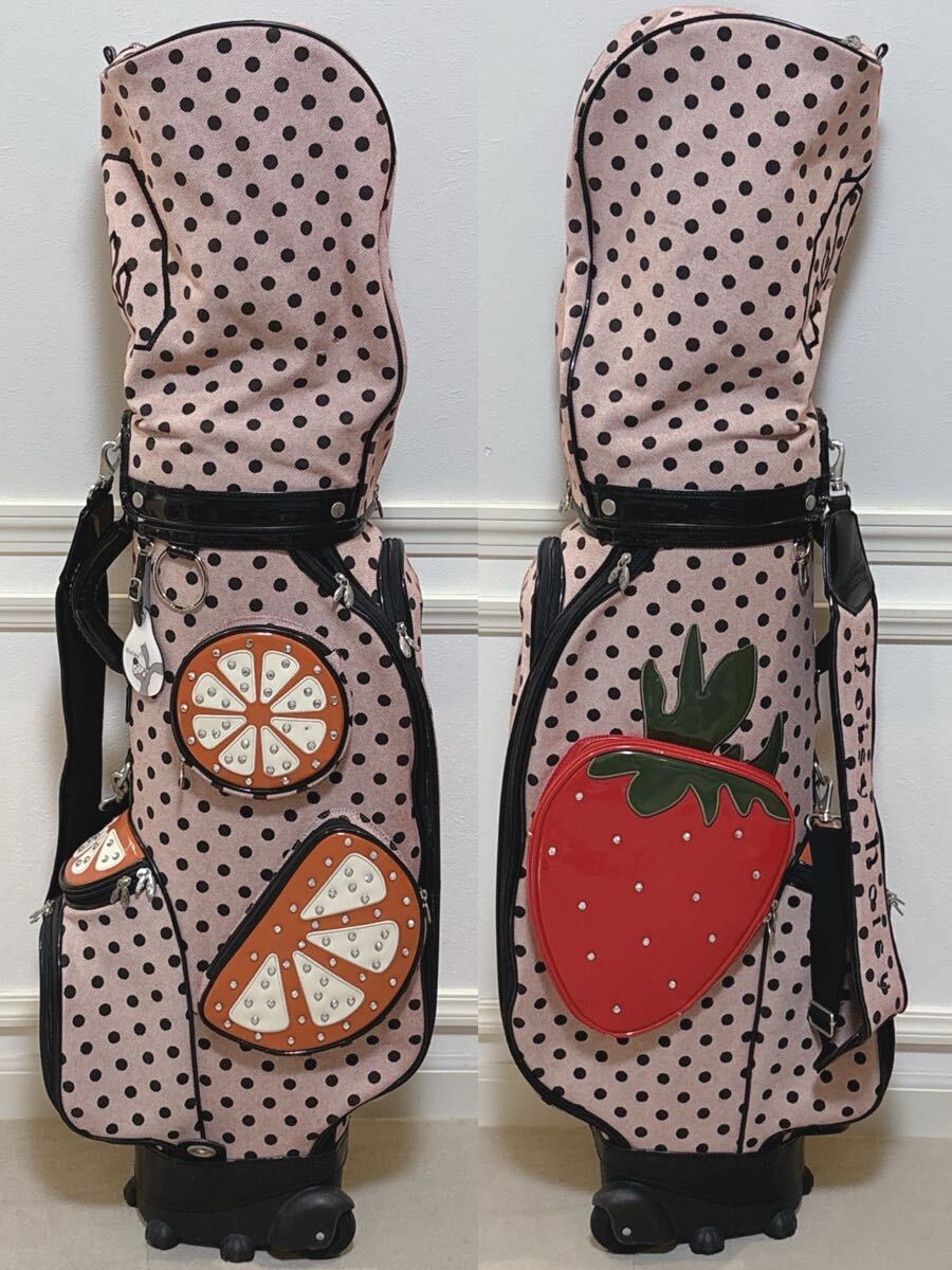 noisy noisy by mieko uesako キャスター付 キャディバッグ フルーツ柄 水玉柄 ピンク×ブラック ミエコウエサコ