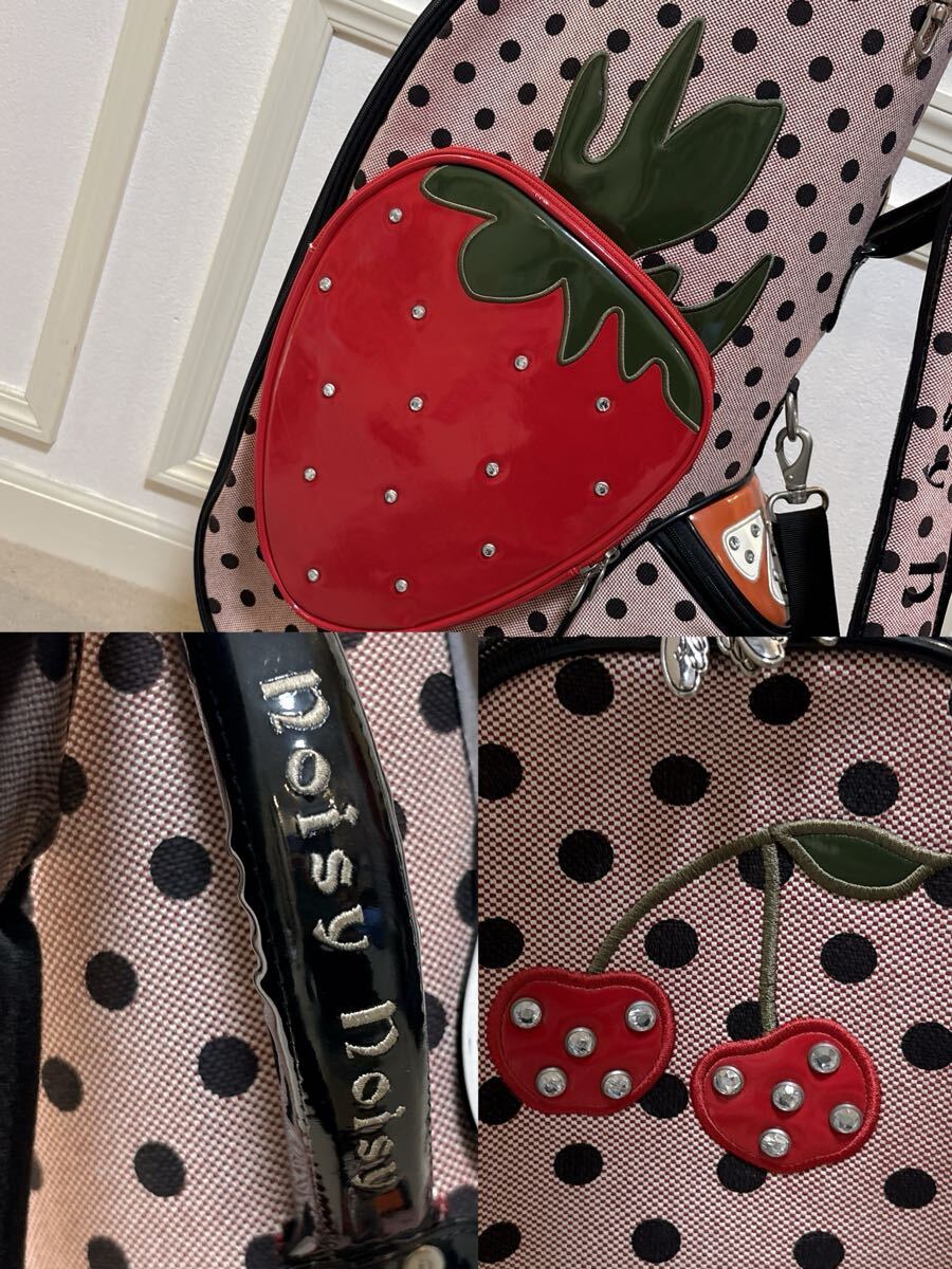 Product name: noisy noisy by mieko uesako キャスター付 キャディバッグ フルーツ柄 水玉柄 ピンク×ブラック ミエコウエサコ