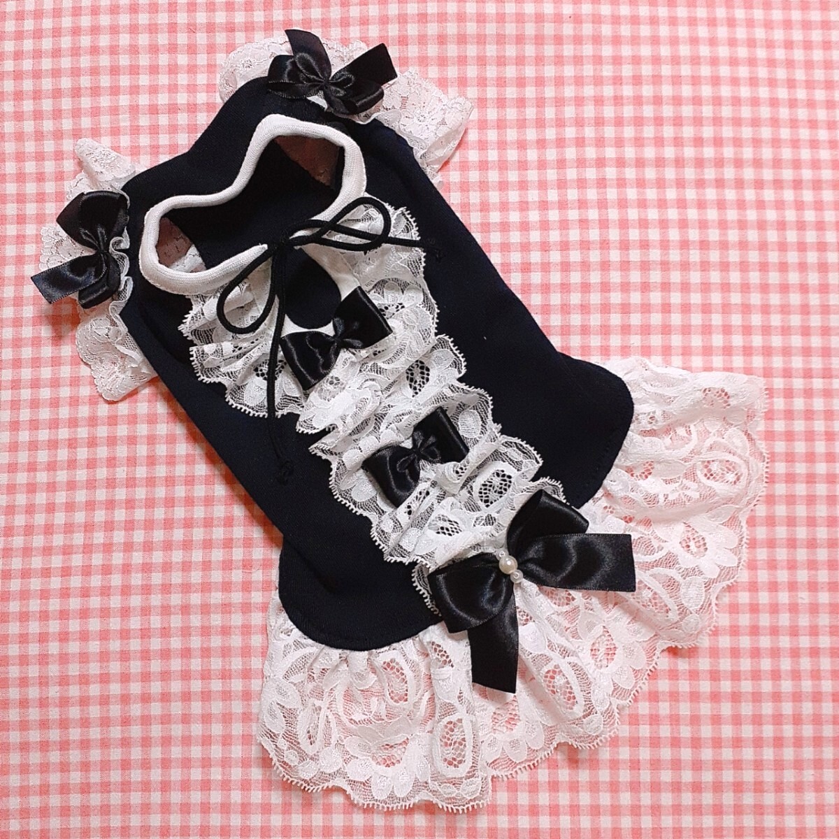 白黒レースとリボンワンピース♪SS/胴37丈28