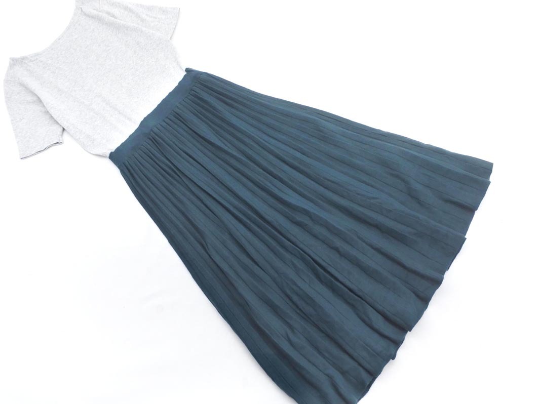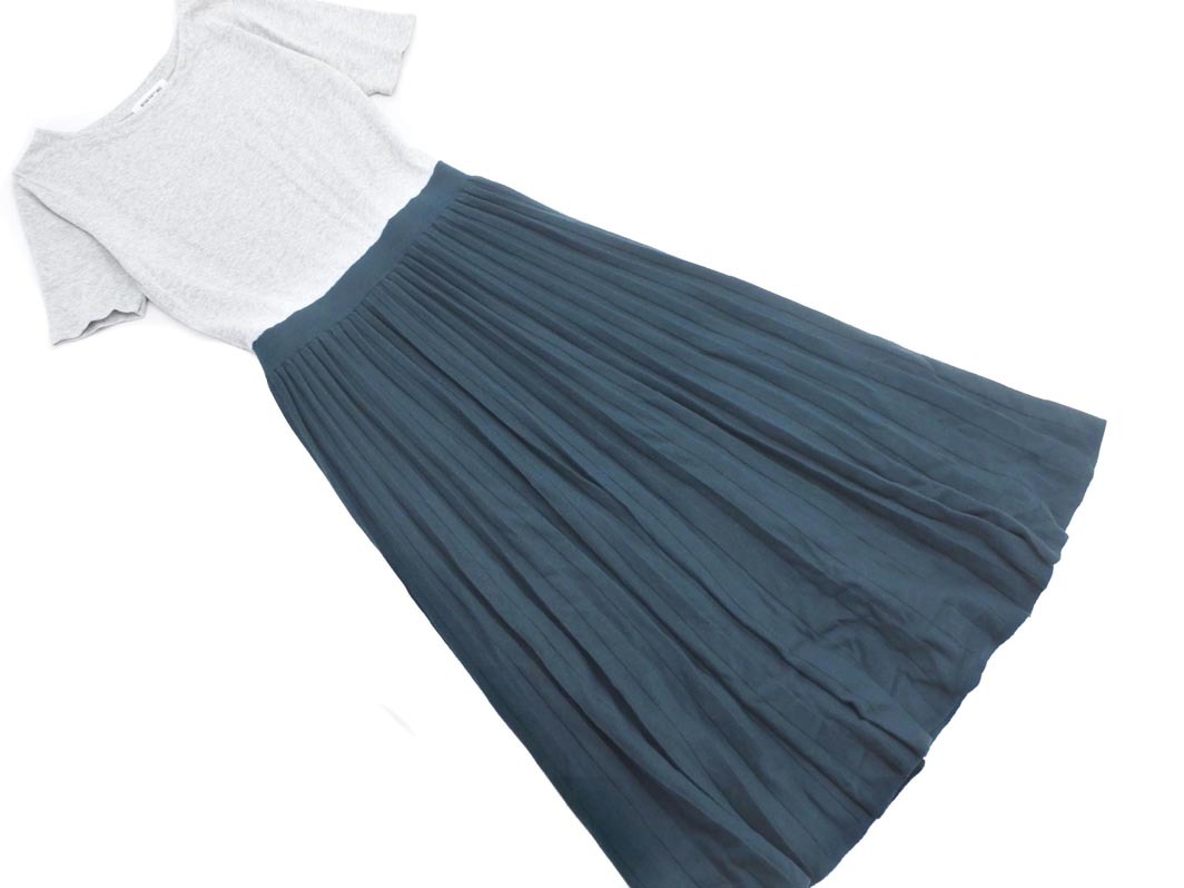 Product name: ナチュラルビューティーベーシック プリーツ ニット ワンピース sizeM/グレーxダークグリーン ■◇ ☆ fgc3 レディース