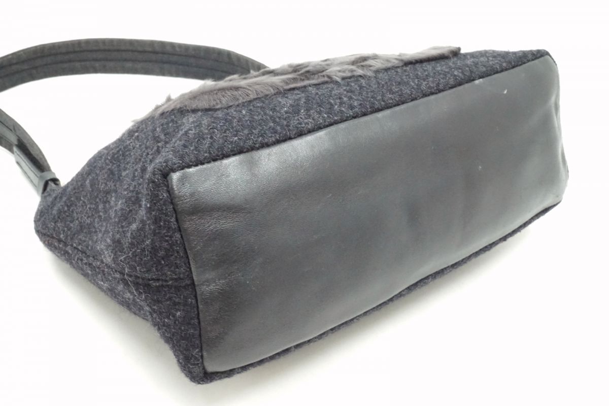 Product name: プラダ ワン ショルダーバッグ ハーフムーン ロゴ ニット フェイクファー ナッパレザー 黒 ブラック PRADA 2967h