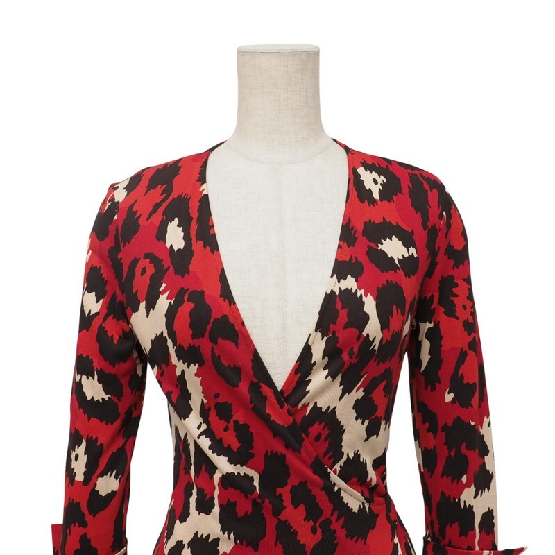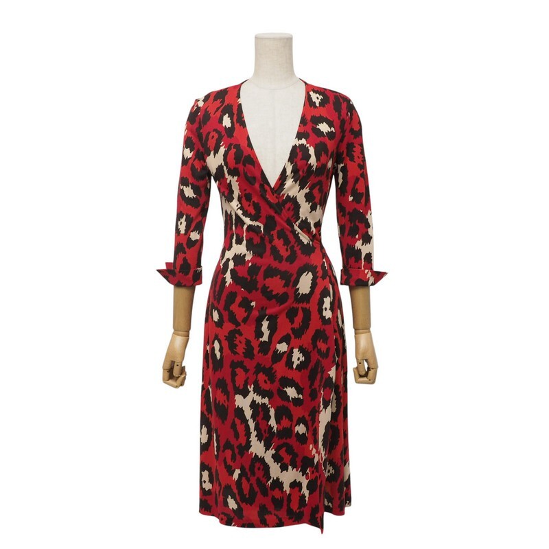 Product name: MH8673=DIANE von FURSTENBERG ダイアンフォンファステンバーグ シルクジャージ 総柄 カシュクール ラップワンピース ドレス サイズ6*赤