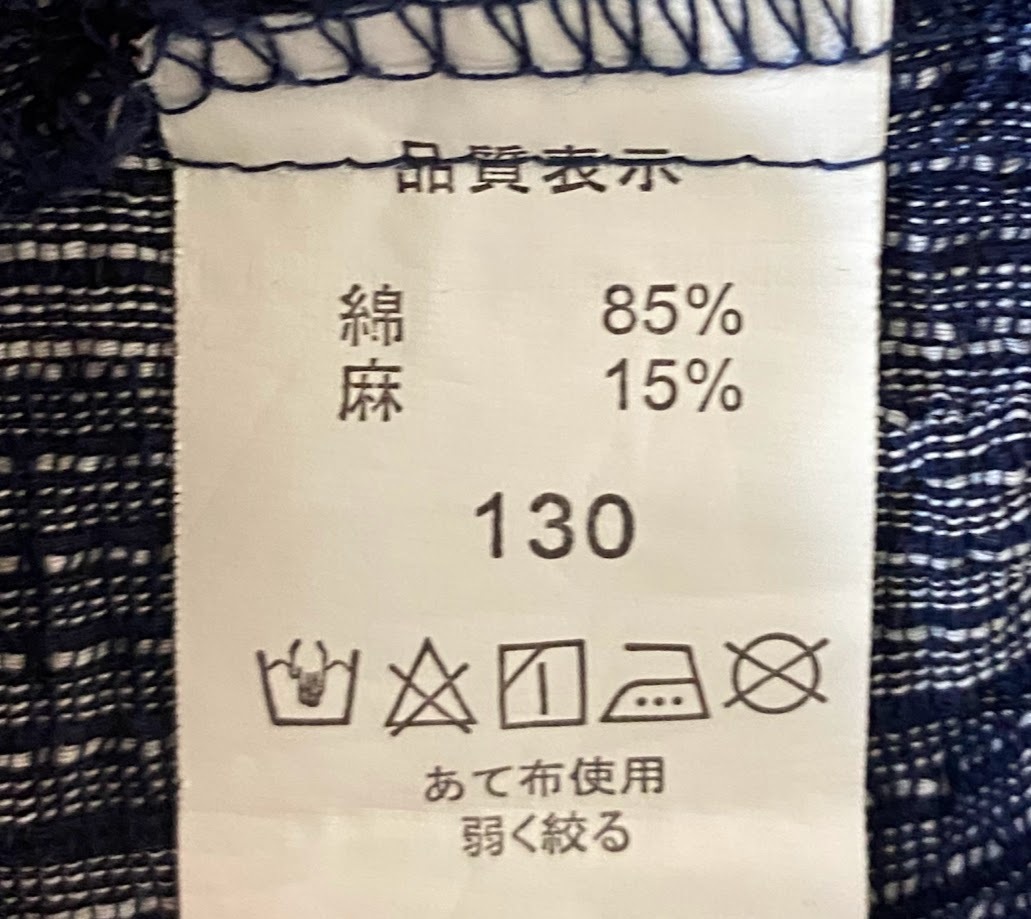 Product name: 【送料込み 使用回数5回程】綿麻甚平/男の子/130cm/市松柄紺/110,120cmの子にも