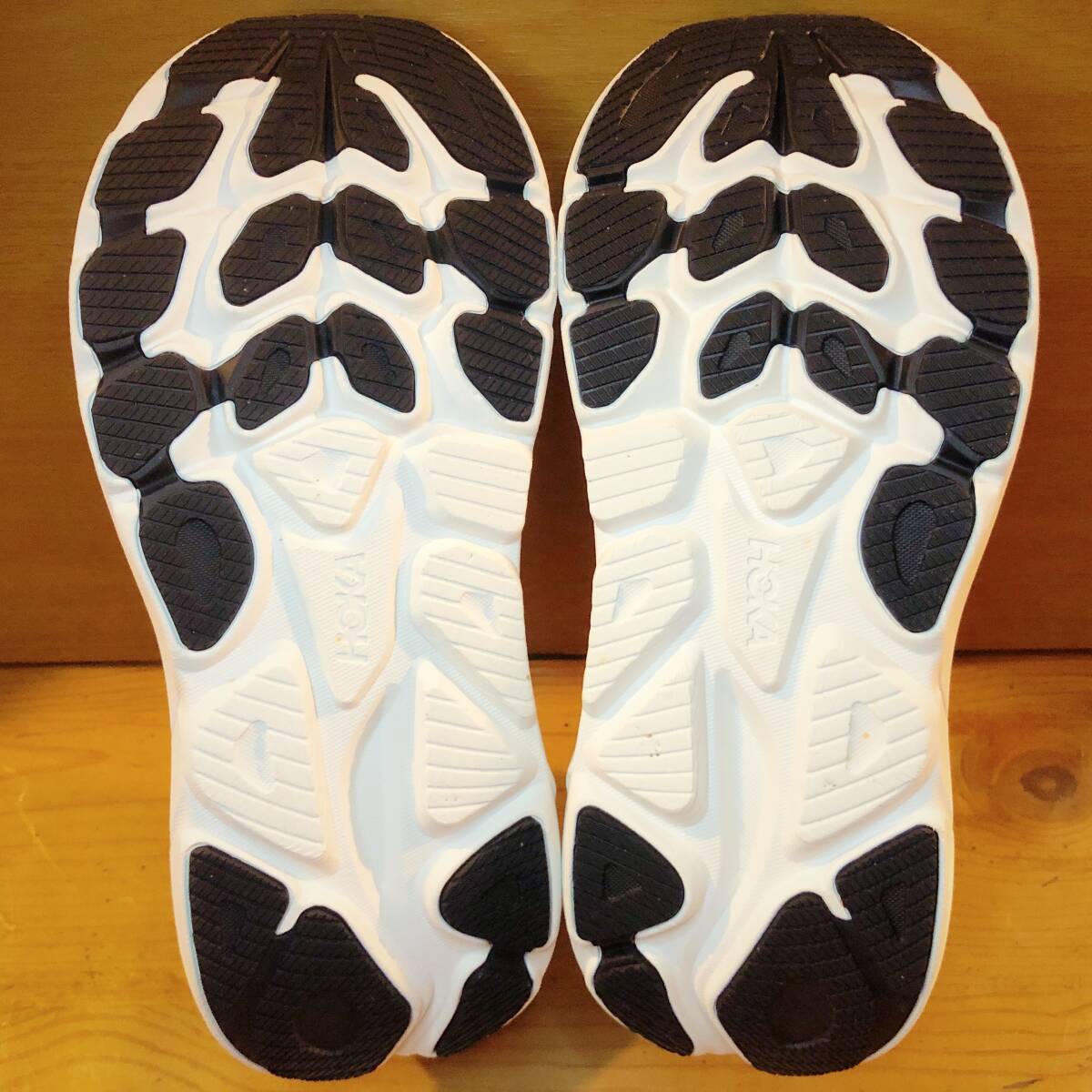 クッション性と安定感に富むCompression-Mold EVA素材が使われ、ふかふかした感触で、とても快適です。衝撃吸収性が高く、着地の衝撃や地面の凸凹を吸収してくれます。強めに踏み込むと沈み込みを感じますが、安定感が高く、左右のブレは感じません。前作クリフトン9よりも。ヒール+10mm・フォア+7mmも厚くなり、よりクッション性が増しています。
