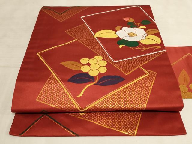 Product name: 平和屋着物◎九寸名古屋帯 色紙重ね花文 金糸 正絹 逸品 AAAL7119pf
