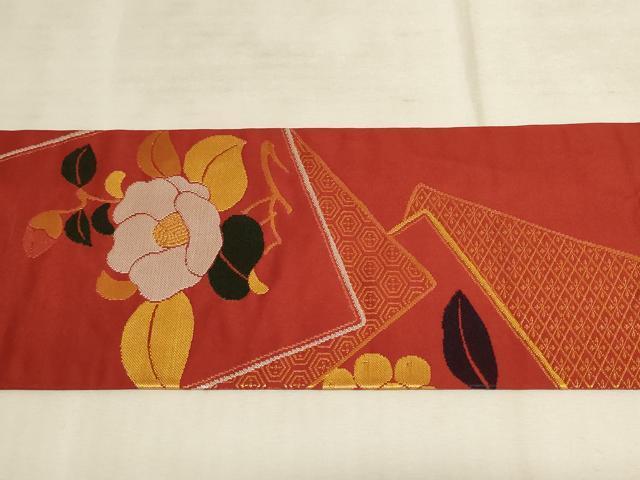 平和屋着物◎九寸名古屋帯 色紙重ね花文 金糸 正絹 逸品 AAAL7119pf