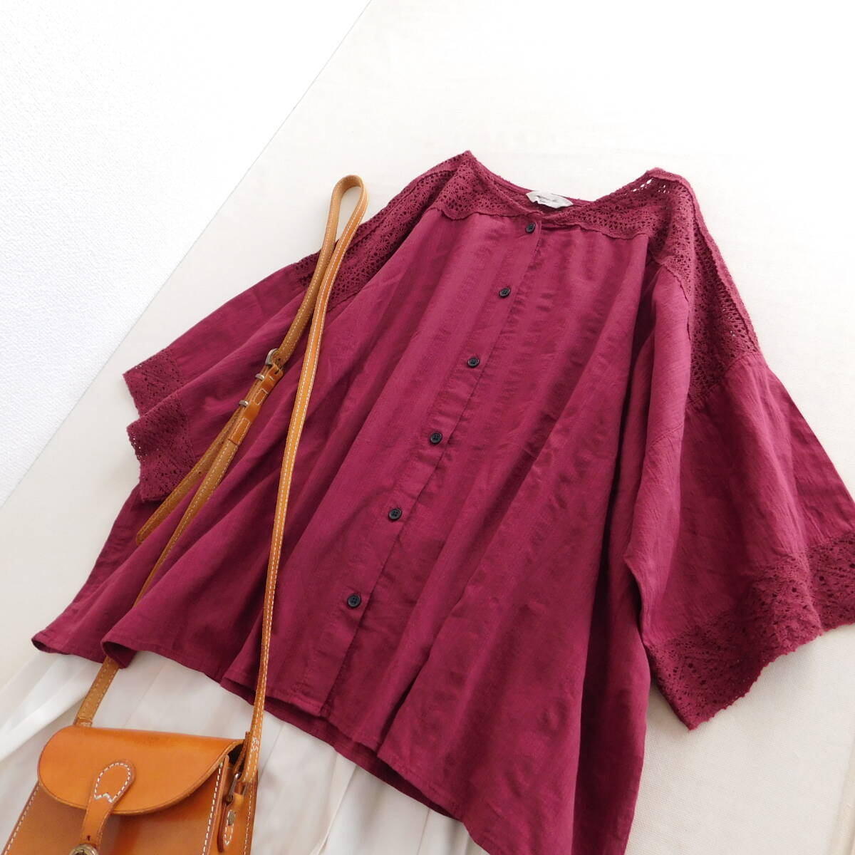 ダスティーなボルドー系カラーのブラウスがステキです。