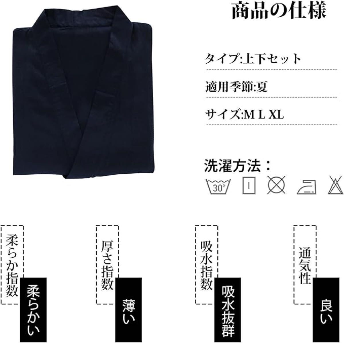 甚平L 作務衣 じんべい 部屋着 ネイビー 上下セットダブルガーゼ コットン 綿100% 新品タグ付き