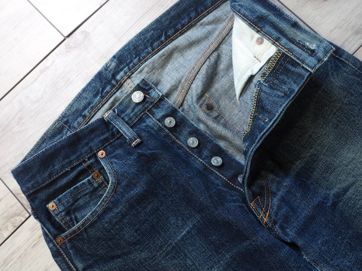 濃淡の大きなジャパンヴィンテージさながらの色味。裾は近年上げしてあります。(レザーパッチ、内タグはありませんが同商品を過去に扱いしてあり D-HG1118 初期アイテムとなります。)
