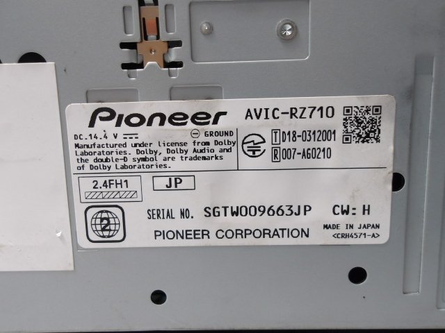 Product name: 中古 カロッツェリア AVIC-RZ710 メモリーナビ/DVD/Bluetooth/フルセグ 7型 ETC付き ND-ETC4 (棚4857-D210)