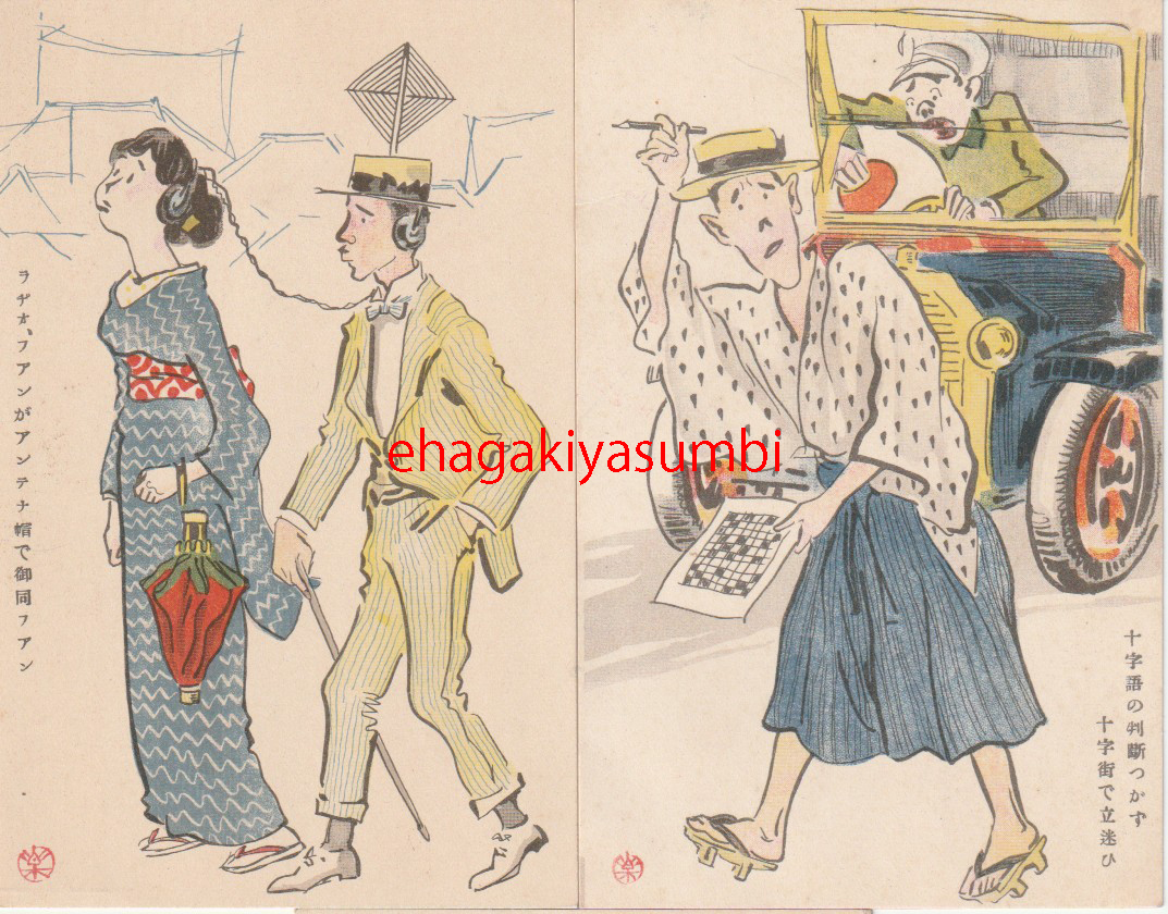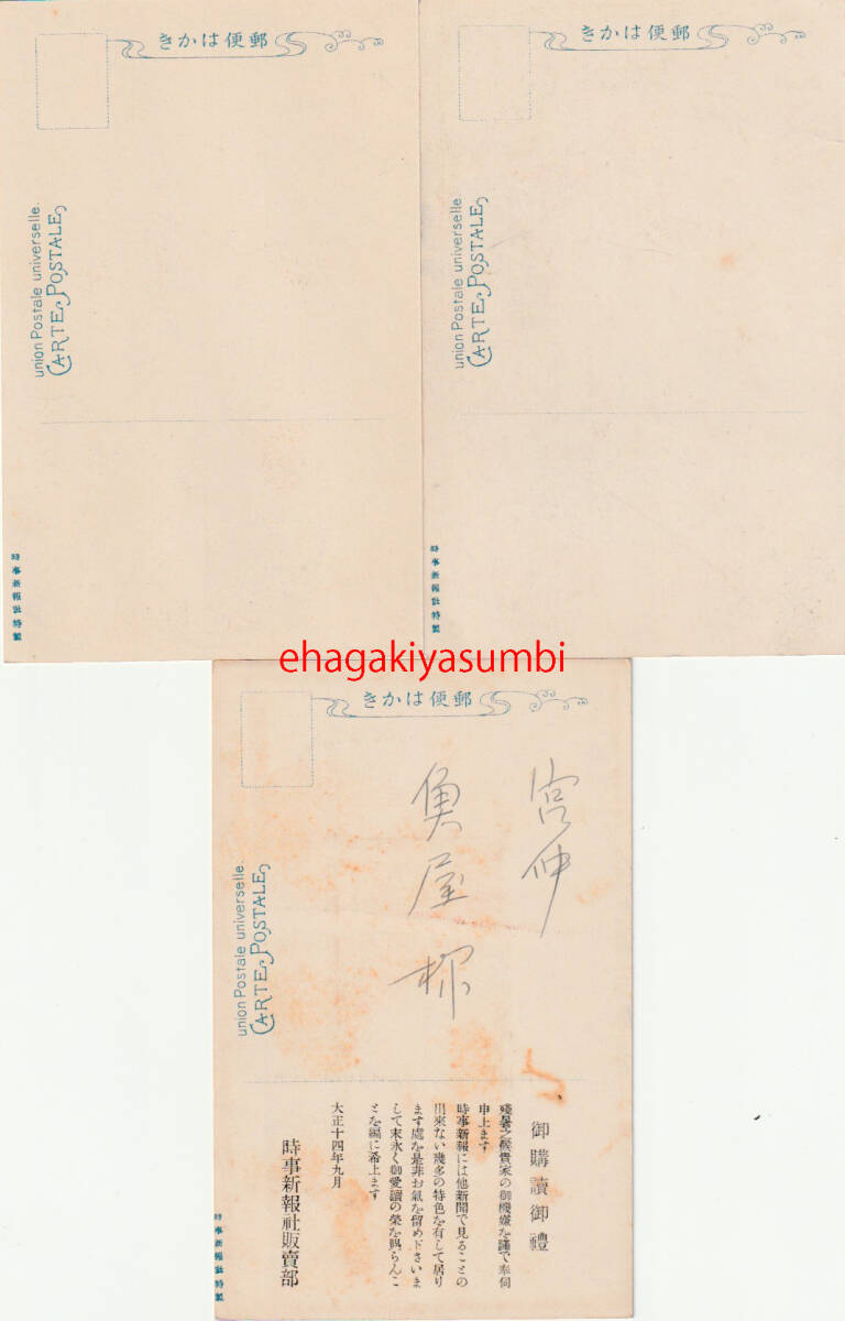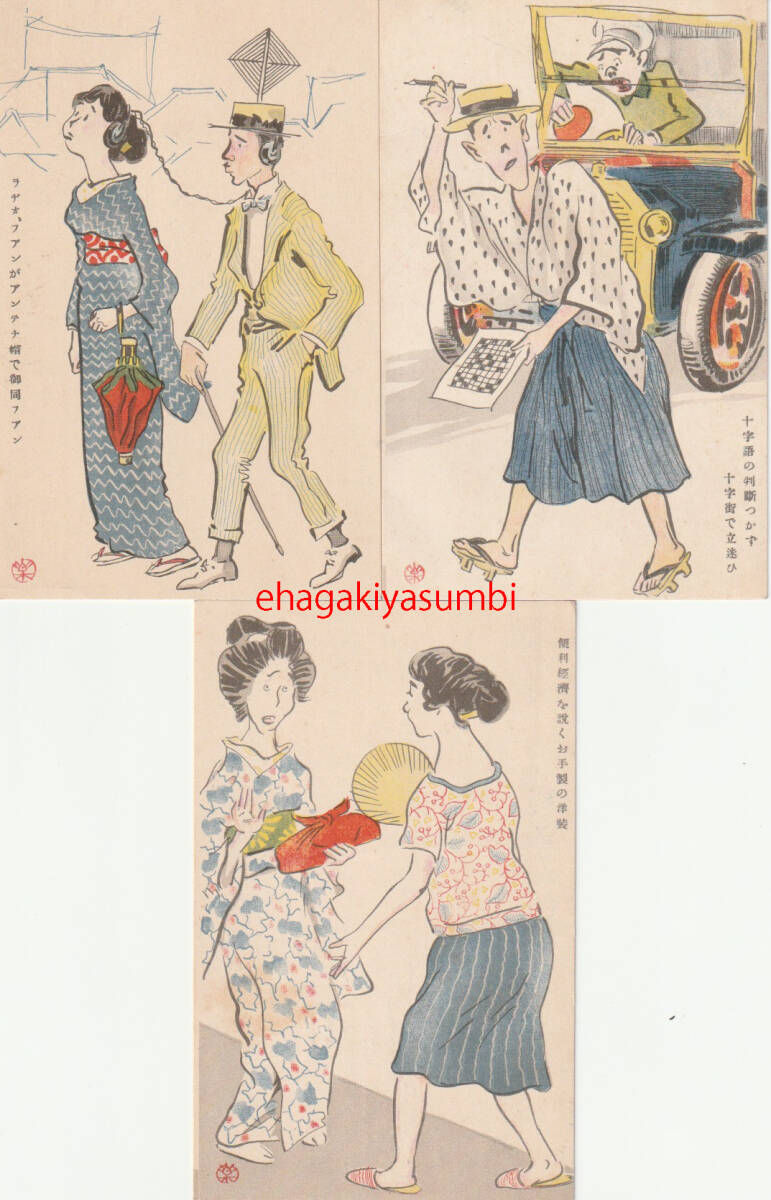 Product name: 戦前絵葉書■漫画イラスト■北澤楽天画 時代風俗漫画3枚 時事新報 明治大正