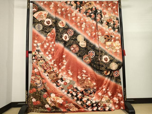 Product name: 平和屋着物▼英王室献上友禅作家 木下勝功 振袖 駒刺繍 地紙吉祥花鳥文 黒地 金彩 ロング丈 正絹 逸品 AAAX8404ck