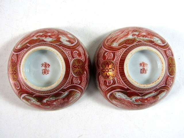 Product name: C358 九谷焼 美陶園 谷秋渓 造 極上細描 赤絵金彩鳳凰文 ぐい呑 酒盃 2客【説明欄に詳細写真有り】
