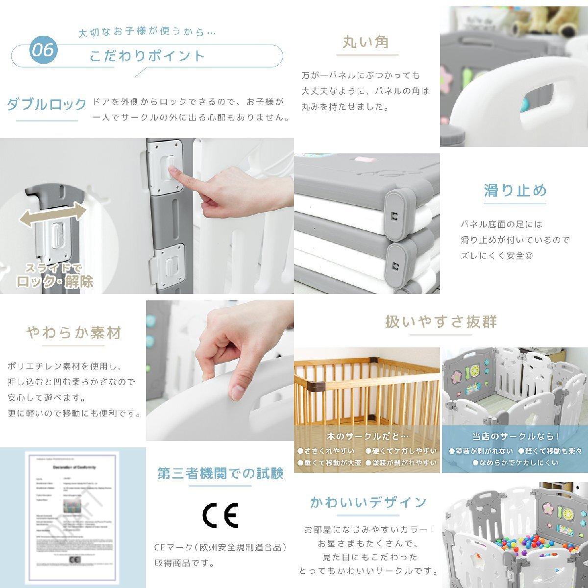 ママにも簡単に組み立てられるベビーサークルです。