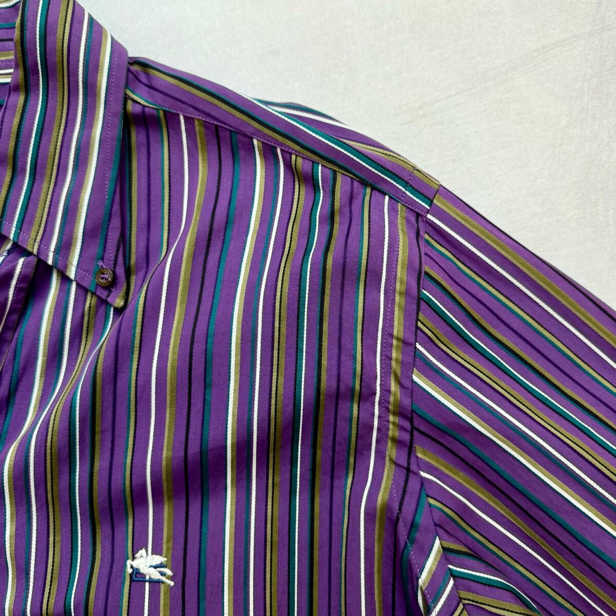 Product name: 極美品/XL相当◎ エトロ ETRO 【溢れ出す色気】メンズ 長袖 ボタンダウンシャツ マルチストライプ ドレスシャツ 刺繍ロゴ 希少色 ペガサス