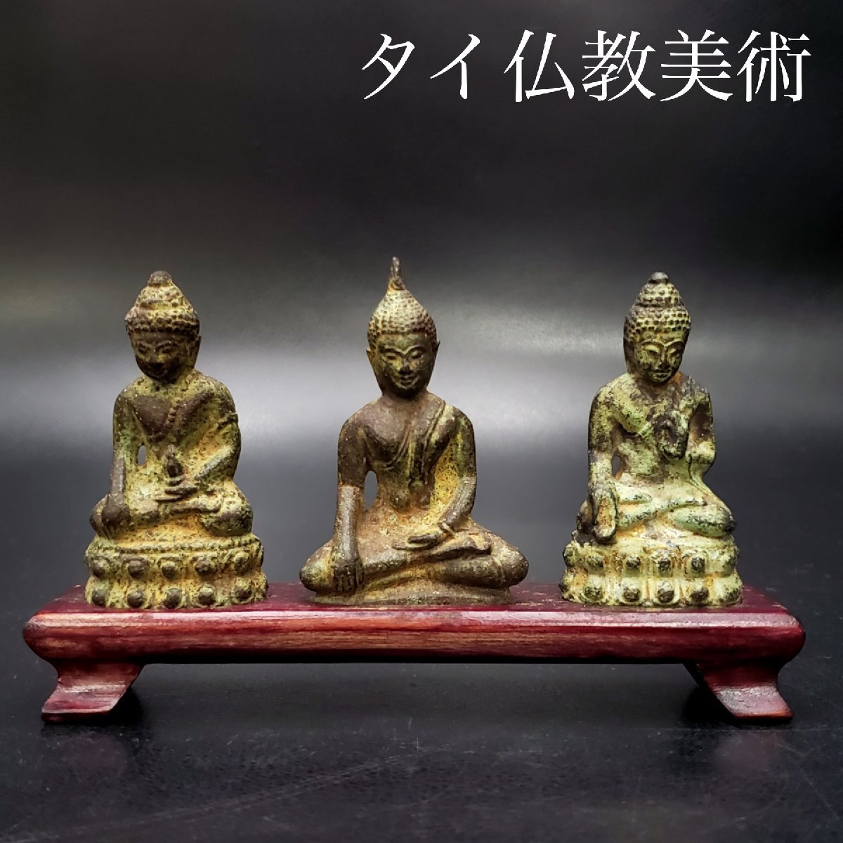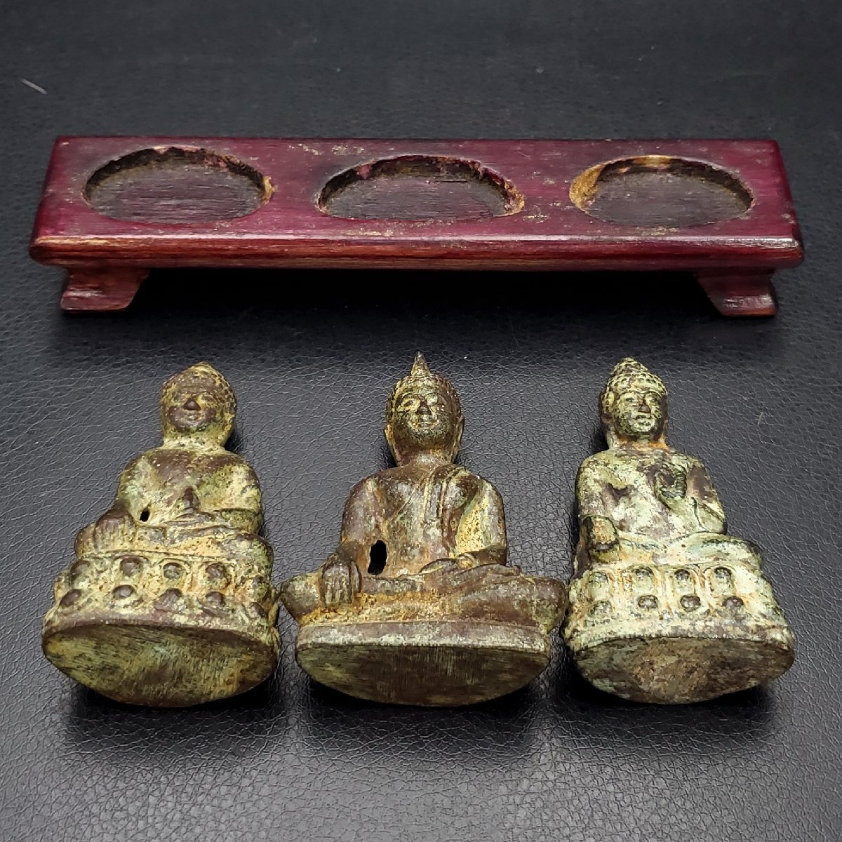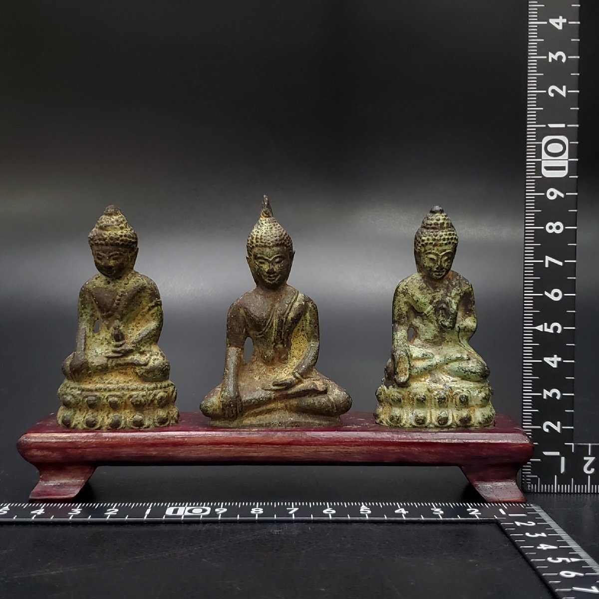 Product name: 【宝蔵】時代物 タイ仏教美術 仏像 3体 置物 木製台座付 414g 銅製