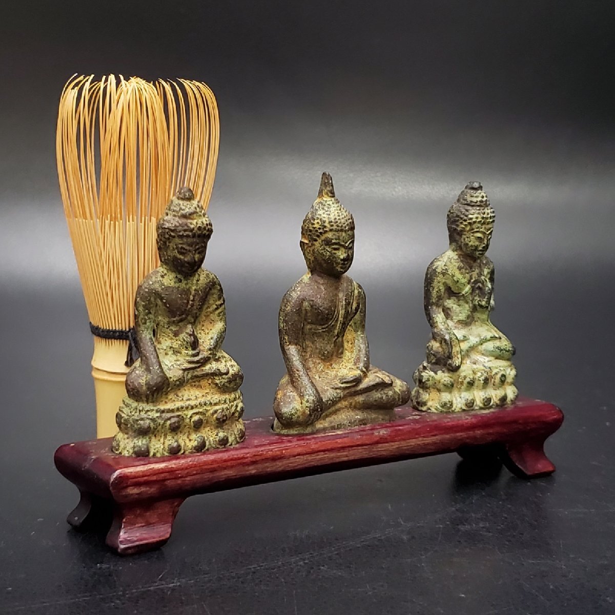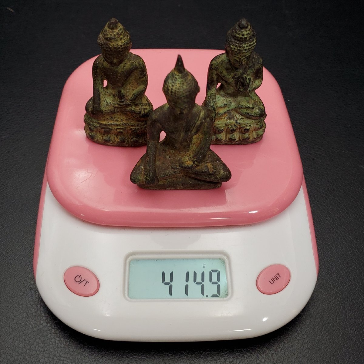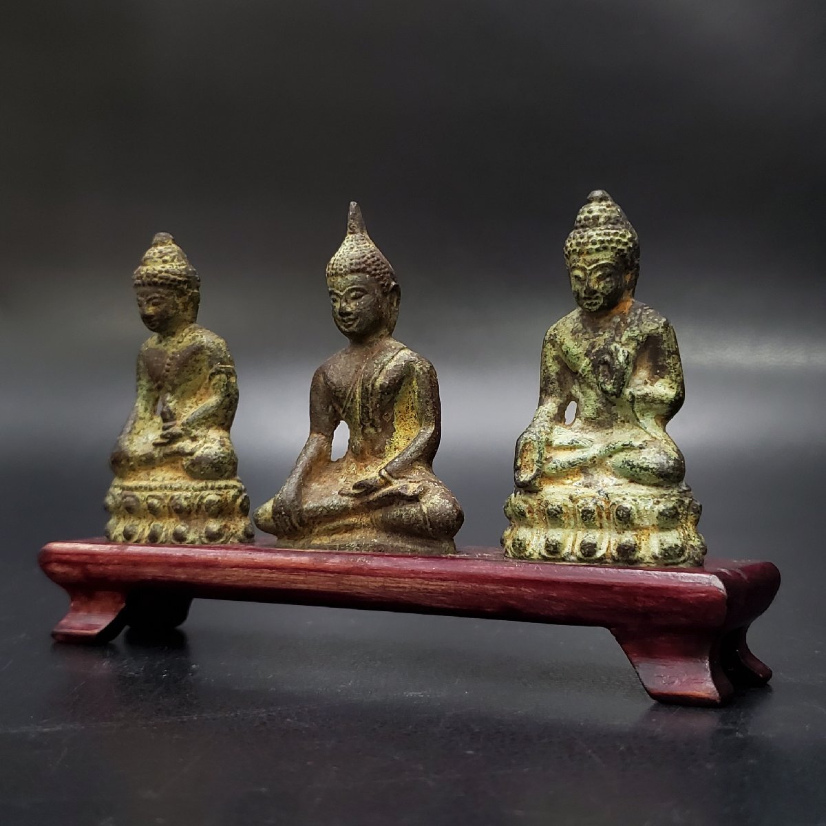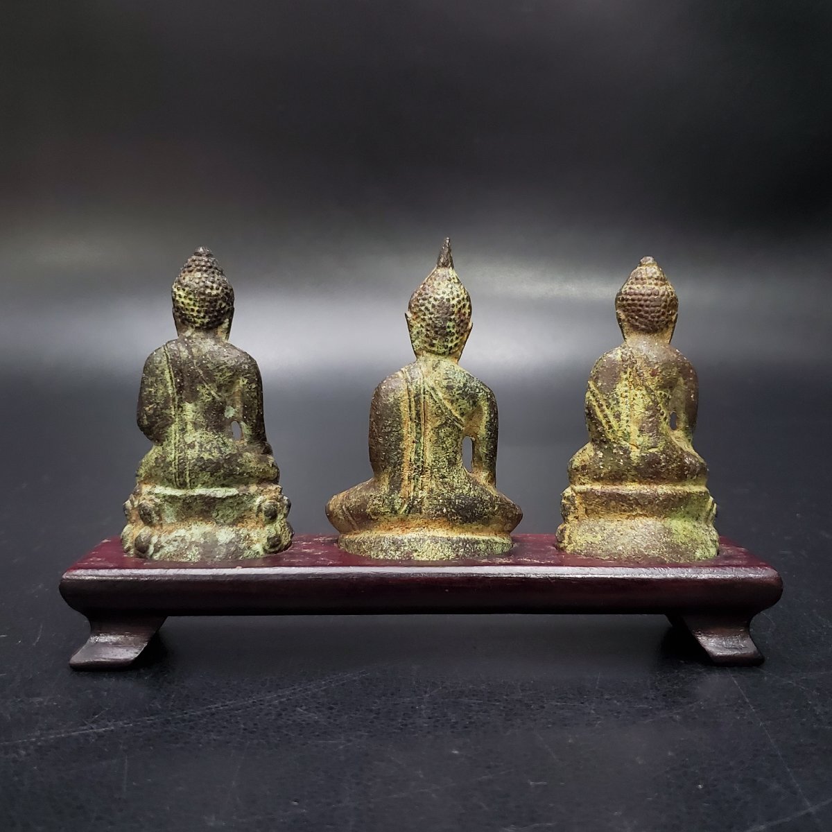 Product name: 【宝蔵】時代物 タイ仏教美術 仏像 3体 置物 木製台座付 414g 銅製