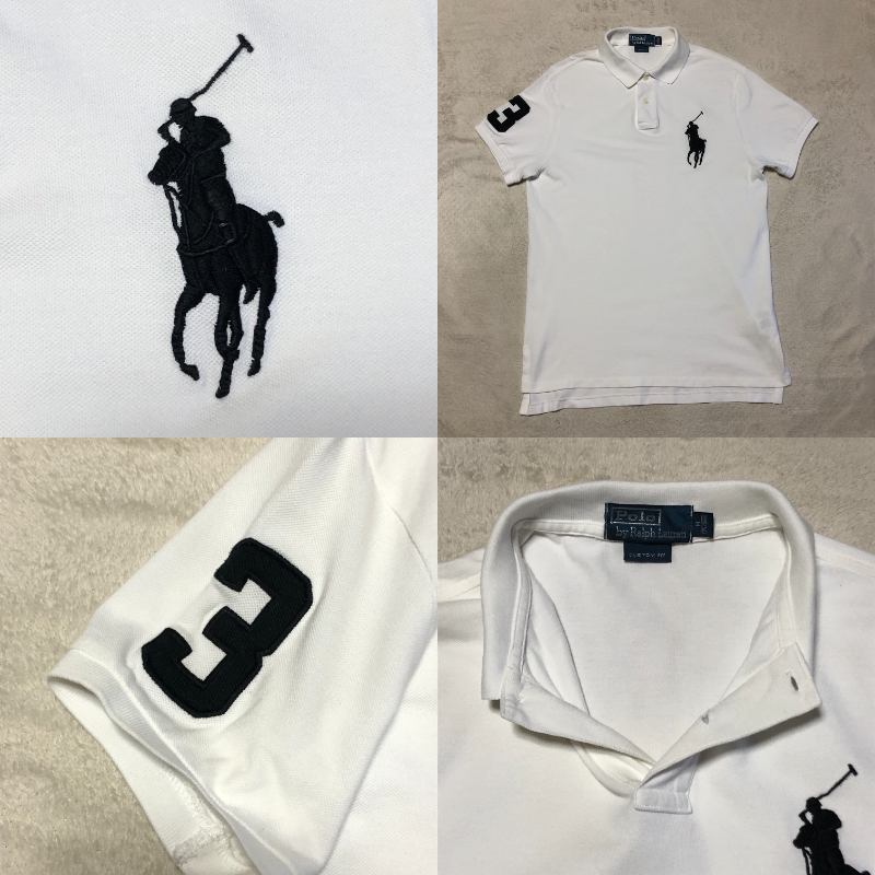 Product name: POLO BY RALPH LAUREN ポロ バイ ラルフローレン 半袖ポロシャツ 鹿の子 ビッグポニー刺 ナンバー刺 白 カスタムフィット Mサイズ