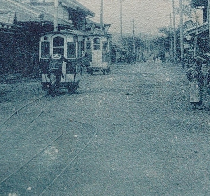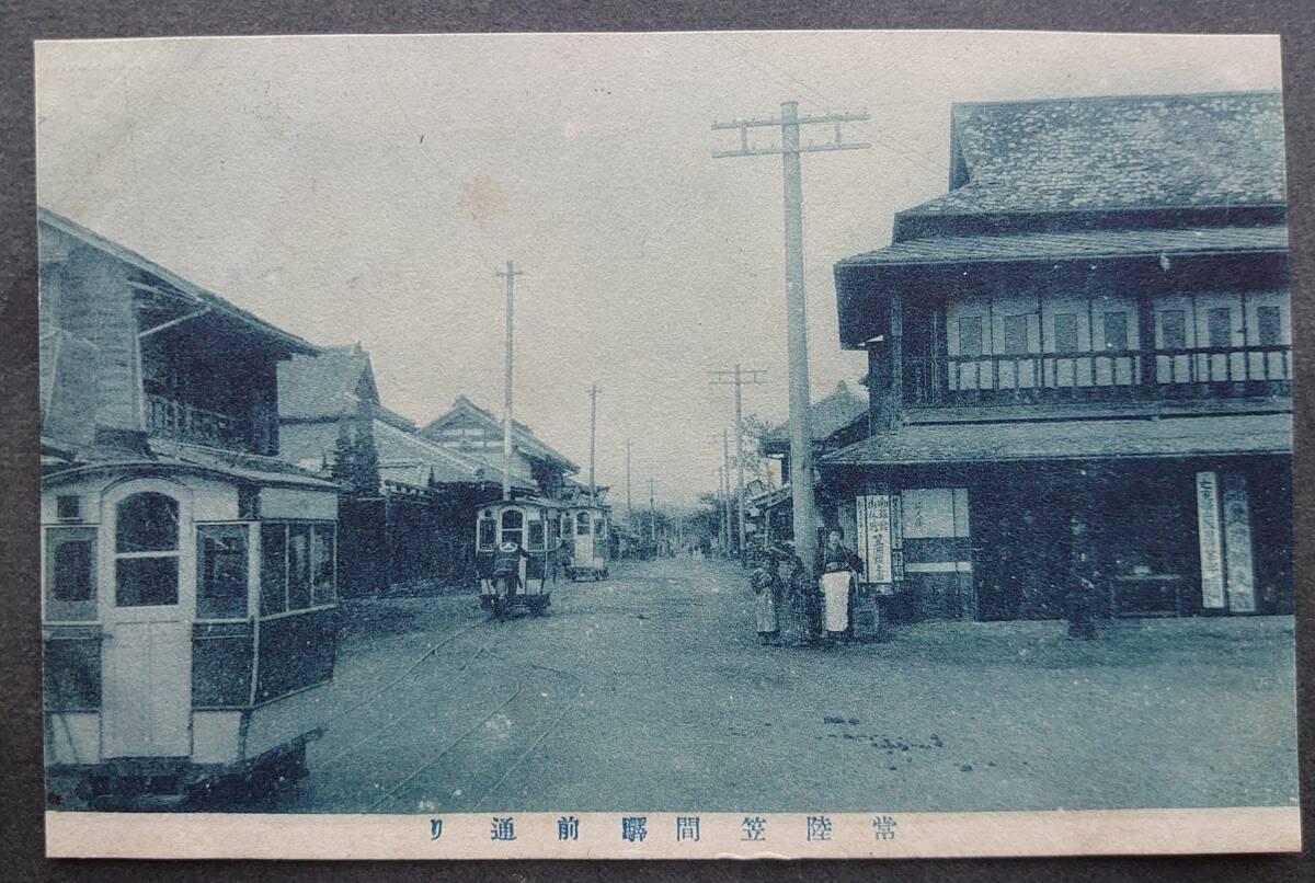 Product name: 【難あり絵葉書】茨城県■常陸笠間駅前通り■1枚/戦前●※縁の一部分トリミング/笠間人車軌道/笠間市/人車鉄道/客車/街並み/町並み/古写真
