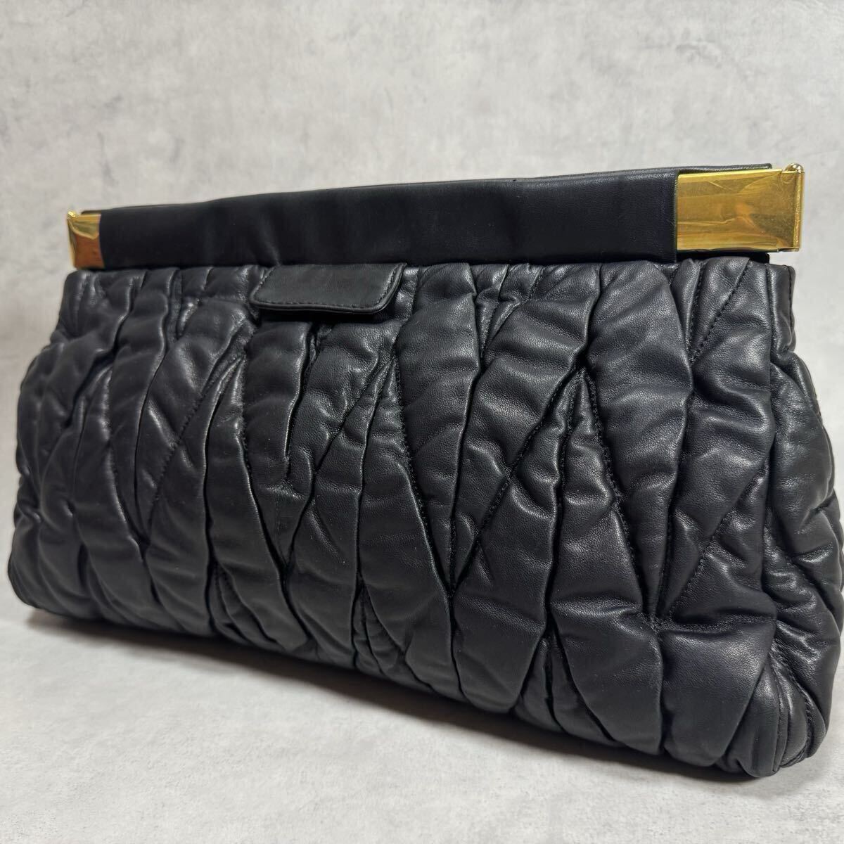 Product name: 極美品/ミュウミュウ MIU MIU クラッチバッグ マテラッセ 黒 ブラック レザー 本革 サイドロゴ 2室 パーティーバッグ セカンドバッグ 袋付