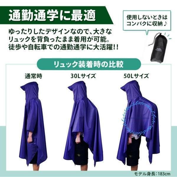 Product name: レインポンチョ 自転車 メンズ レディース リュック アウトドア 防水 おしゃれ 軽量 収納袋付き ブラック