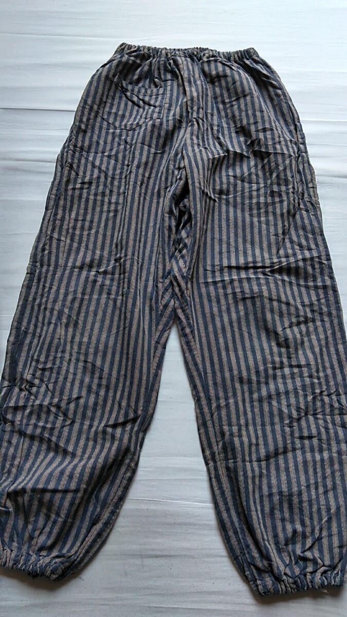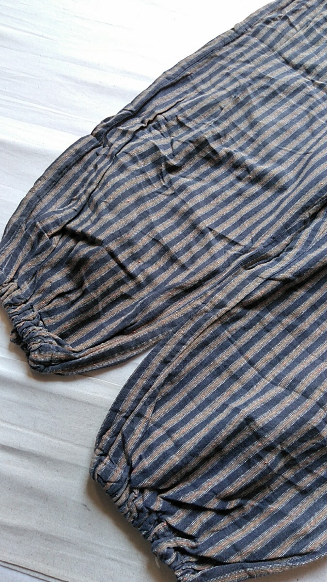 Product name: 古布 木綿 レトロ 縞柄もんぺ 紺藍色 リメイク