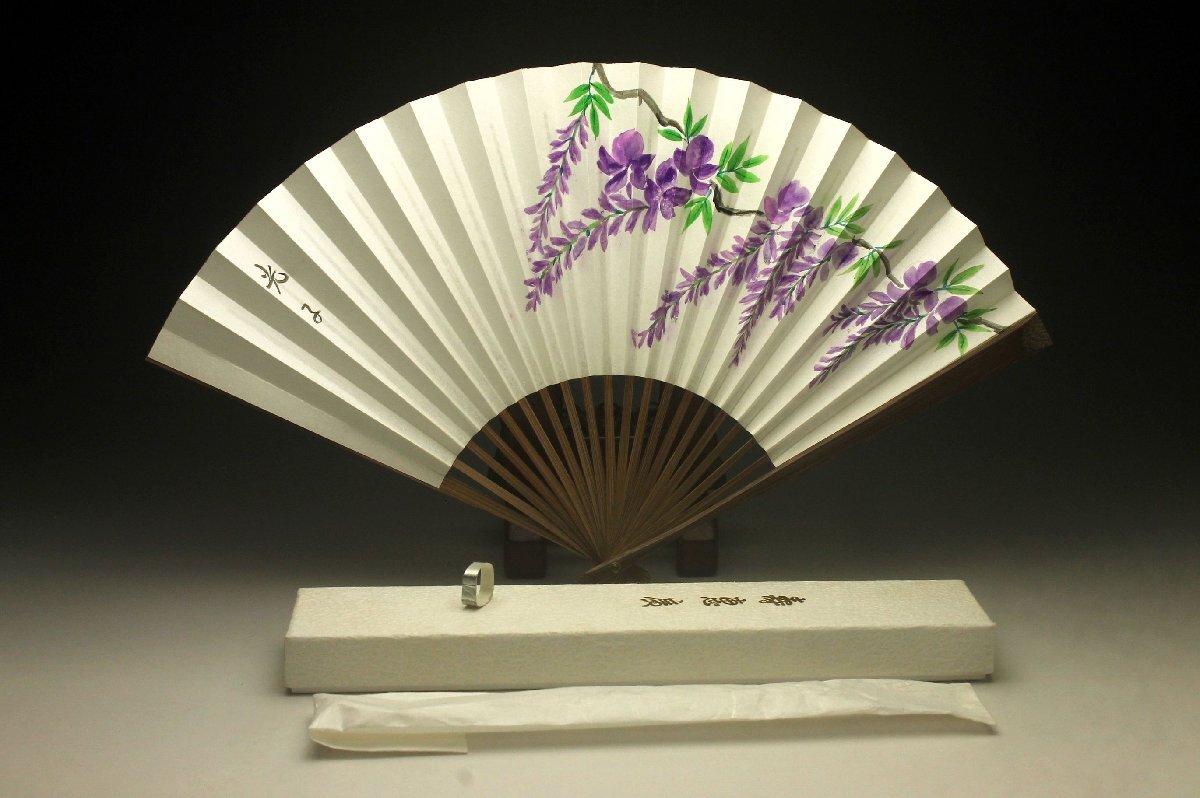 Product name: 【余韻】 小丸屋住井謹製 藤の絵 御舞扇★竹骨 化粧箱 無傷美品<同梱可>