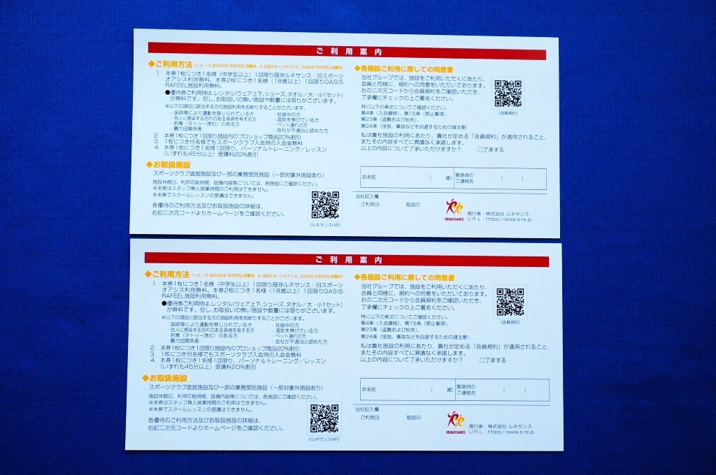 ルネサンス Renaissance 株主優待券 期限:2025年12月最終営業日 未使用 2枚セット