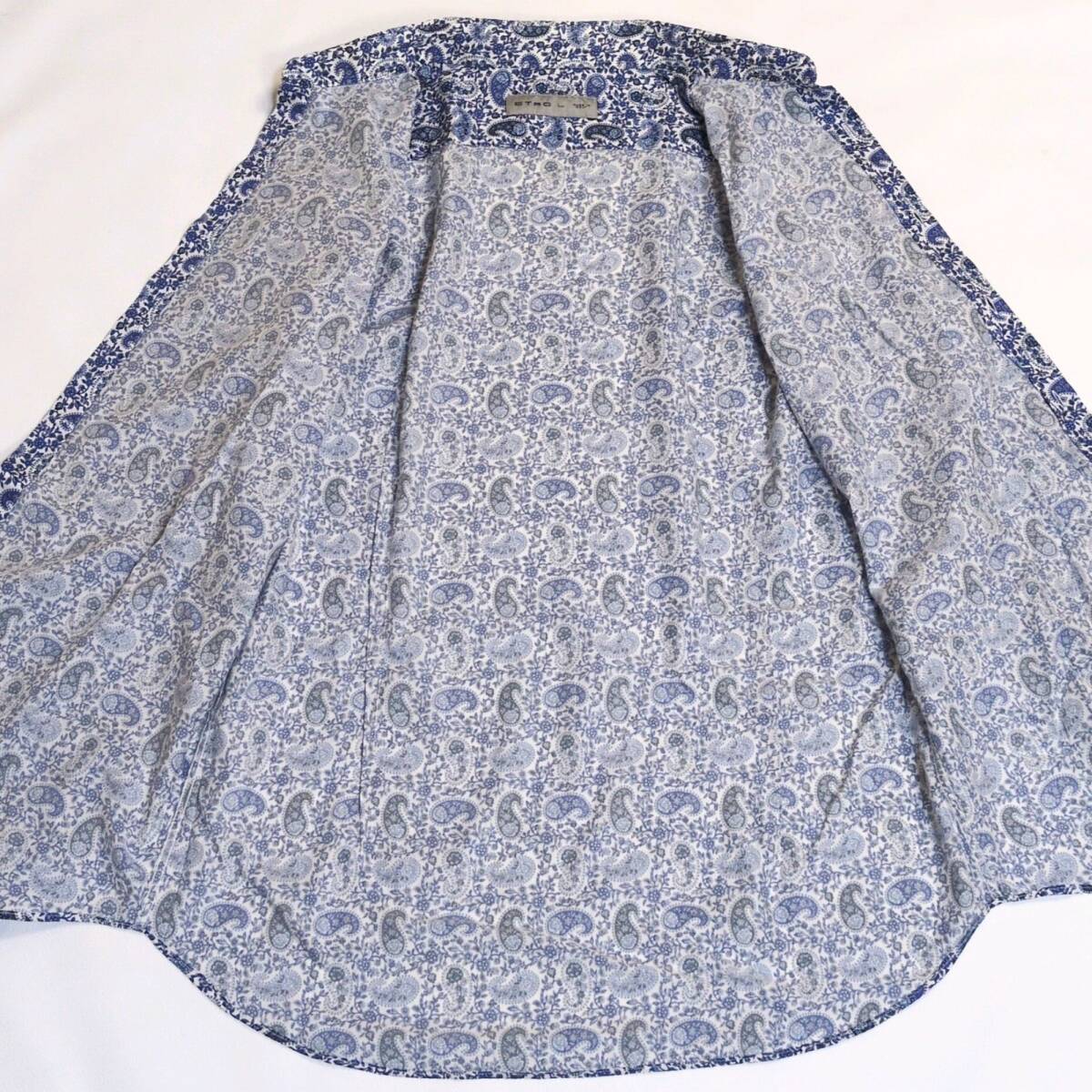 Product name: 美品/L エトロ ETRO ペイズリー 現行タグ 総柄 ブルー系 ドレスシャツ 羽織り 通年 半袖 イタリア製