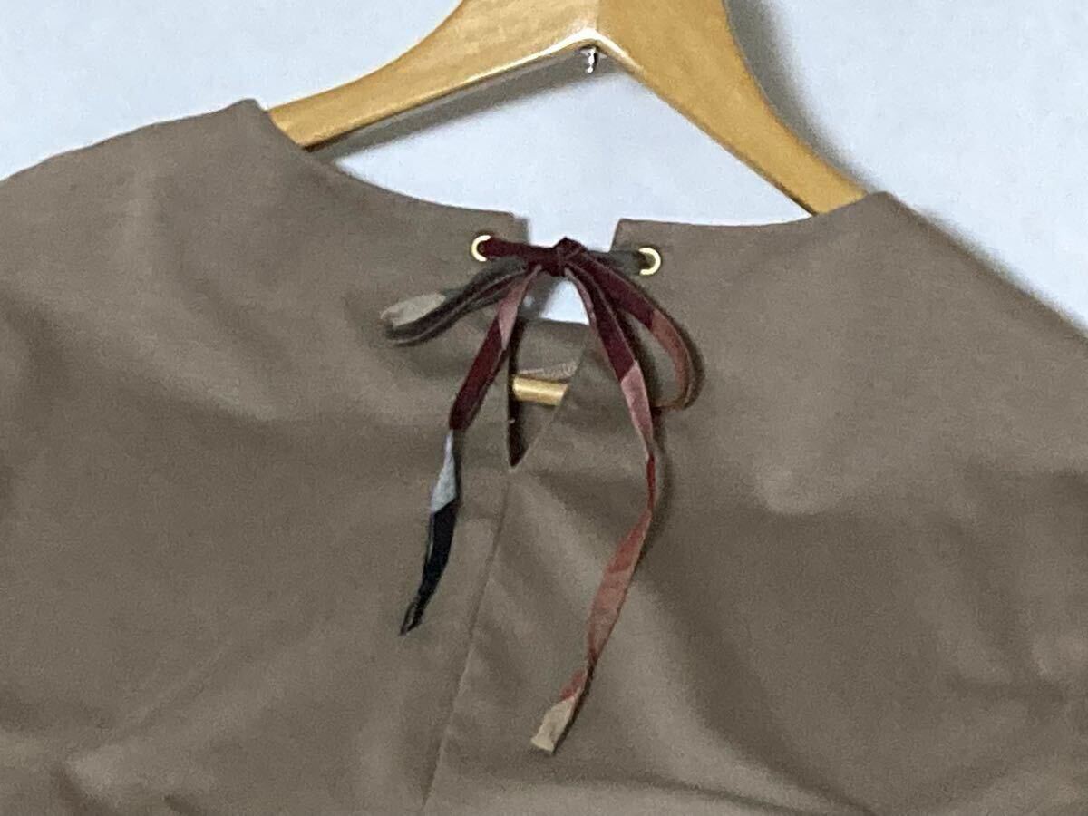 両サイドチェックの切替えがクレストブリッジらしいノースリーブのワンピースです。後ろ首元も同じくチェックのおリボンが付いていて可愛いです。