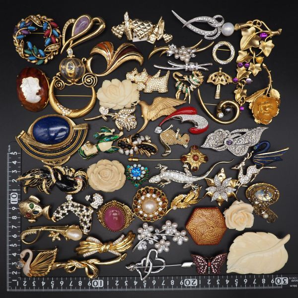 Product name: (GB0801) 1円 ブローチ 豪華50個 ブランド多数 大量セット カラーストーン ブランド多数 ゴールド 等 まとめて