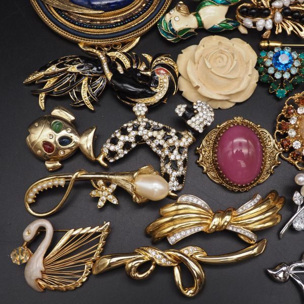 (GB0801) 1円 ブローチ 豪華50個 ブランド多数 大量セット カラーストーン ブランド多数 ゴールド 等 まとめて
