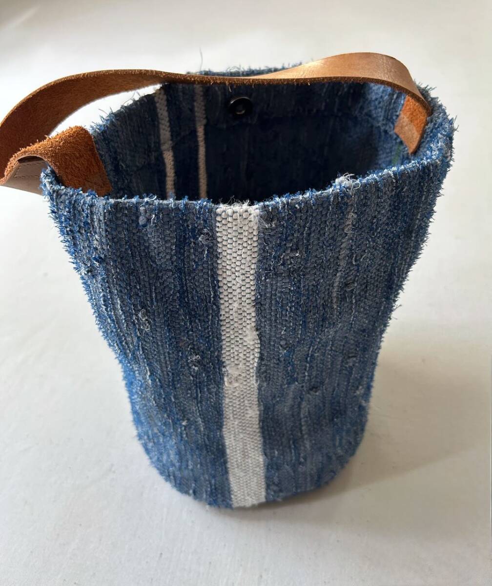 ポールスミス Paul Smithの、 裂き織りになった風合いに筒型の可愛いバックです。