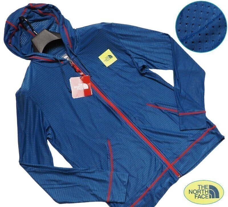 新品正規 ノースフェイス 海外限定 パンチングメッシュ AQUA MESH フーディー/ジャケット メンズMブルー(SCB) 直営店購入