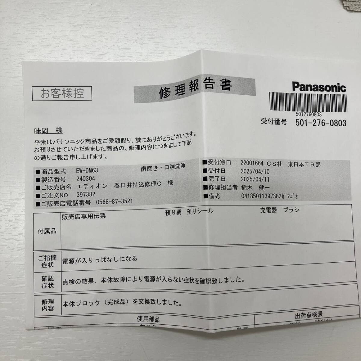 Product name: 4290 【Doltz ドルツ】電動歯ブラシ【Panasonic】EW-DM63