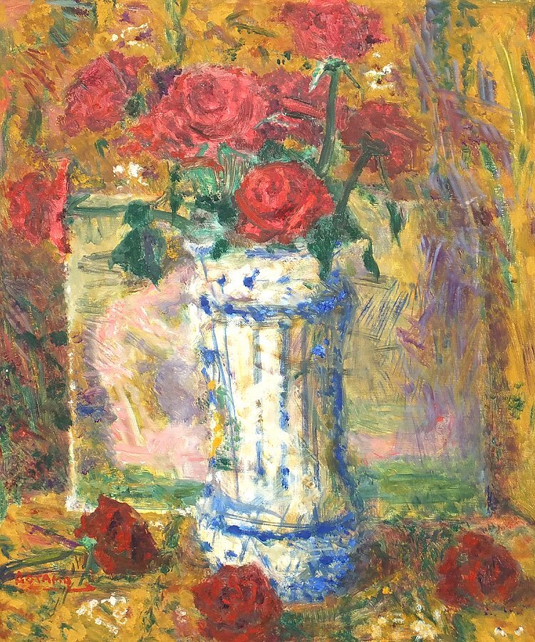 【GLC】青山義雄 「ROSES」 ◆日動画廊取扱(展覧会作)・油彩10号 国画会員 師:マティス 物故巨匠