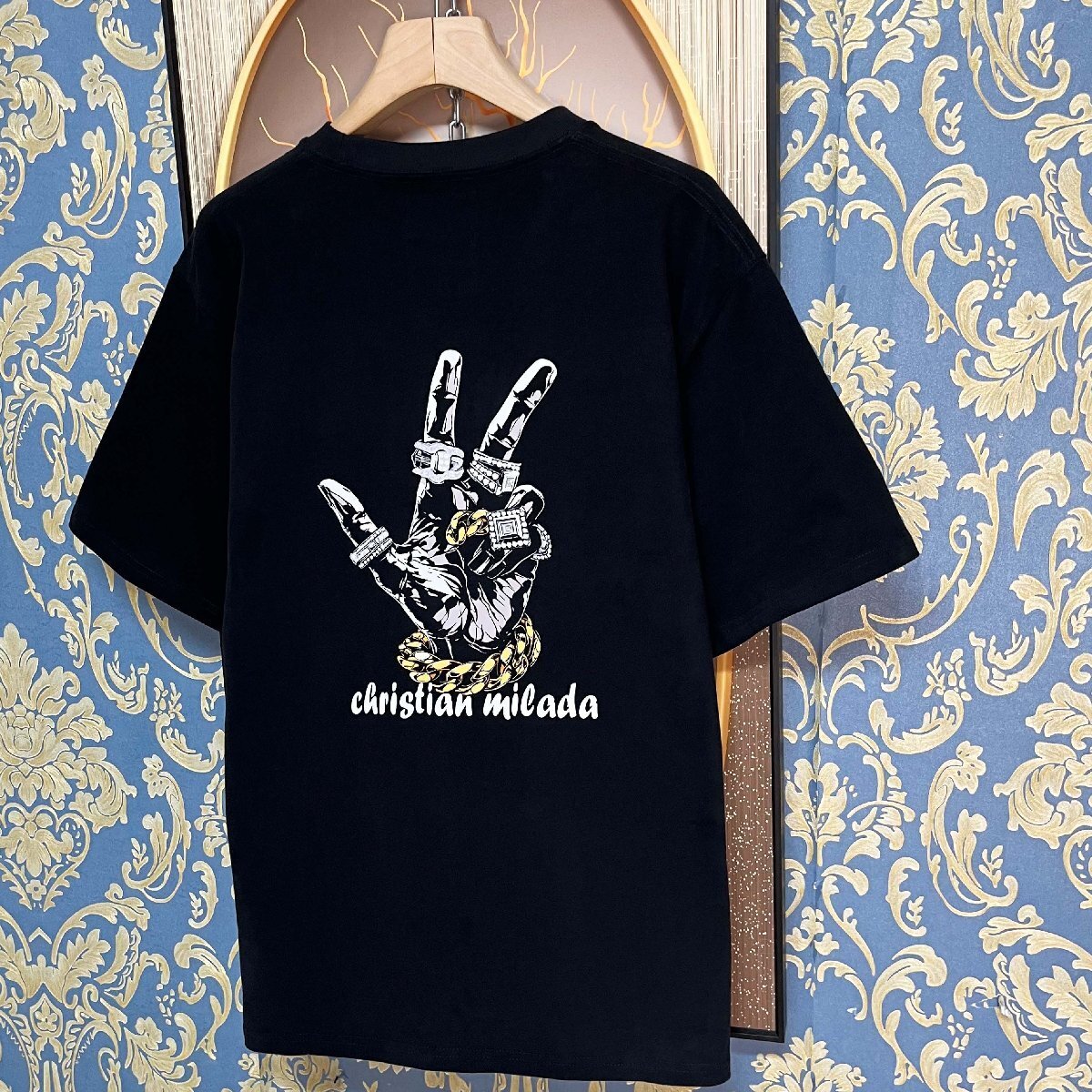 定価2万★christian milada・ミラノ発・半袖Tシャツ★コットン100% 個性 通気 快適 吸汗 ゆったり 個性 トップス ストリート 普段着 夏L